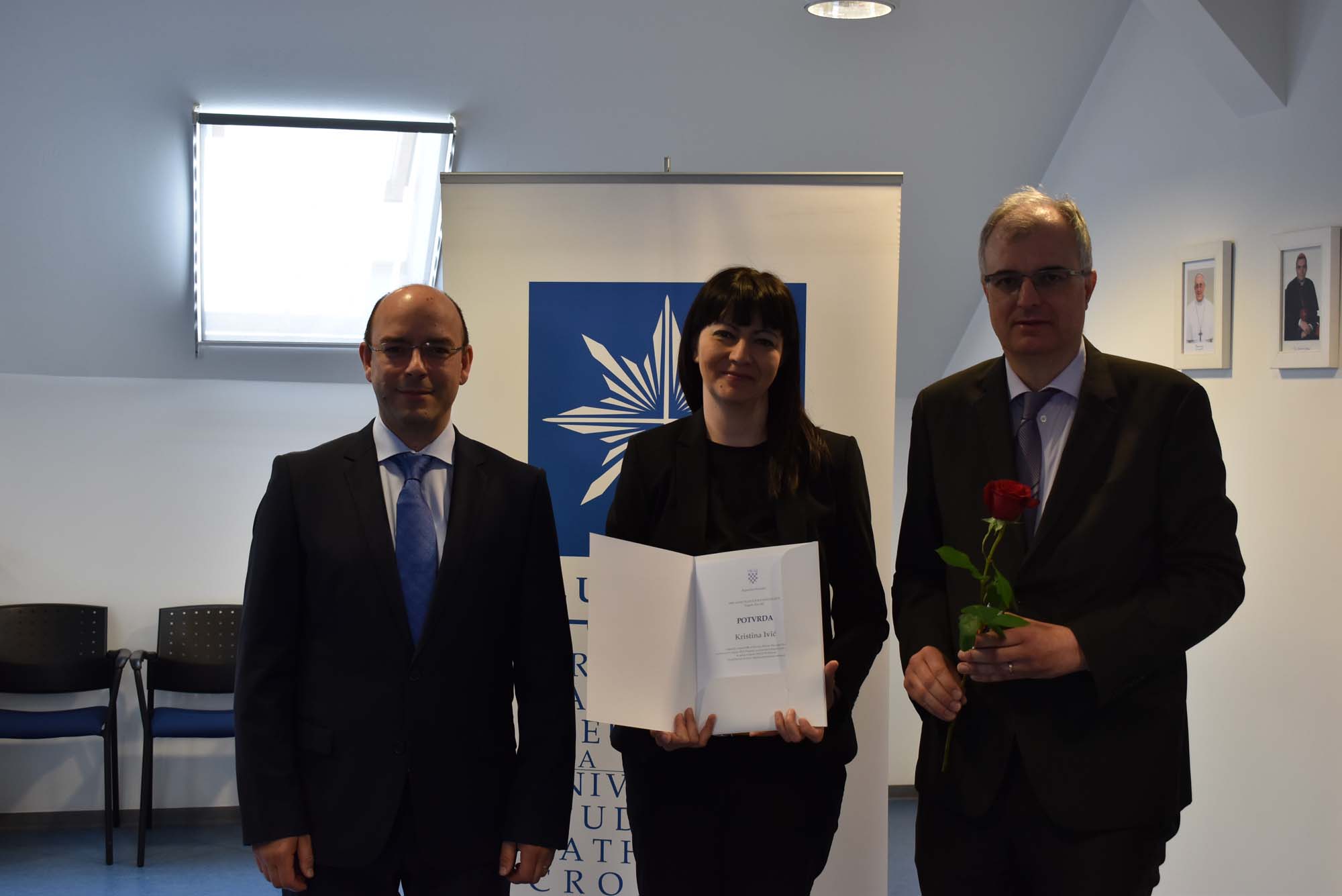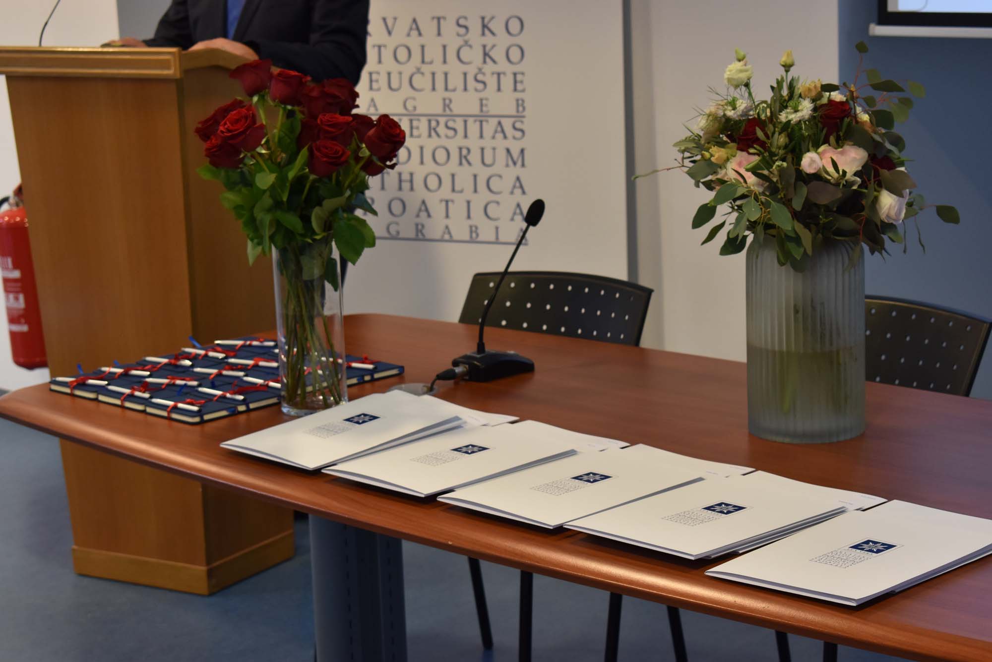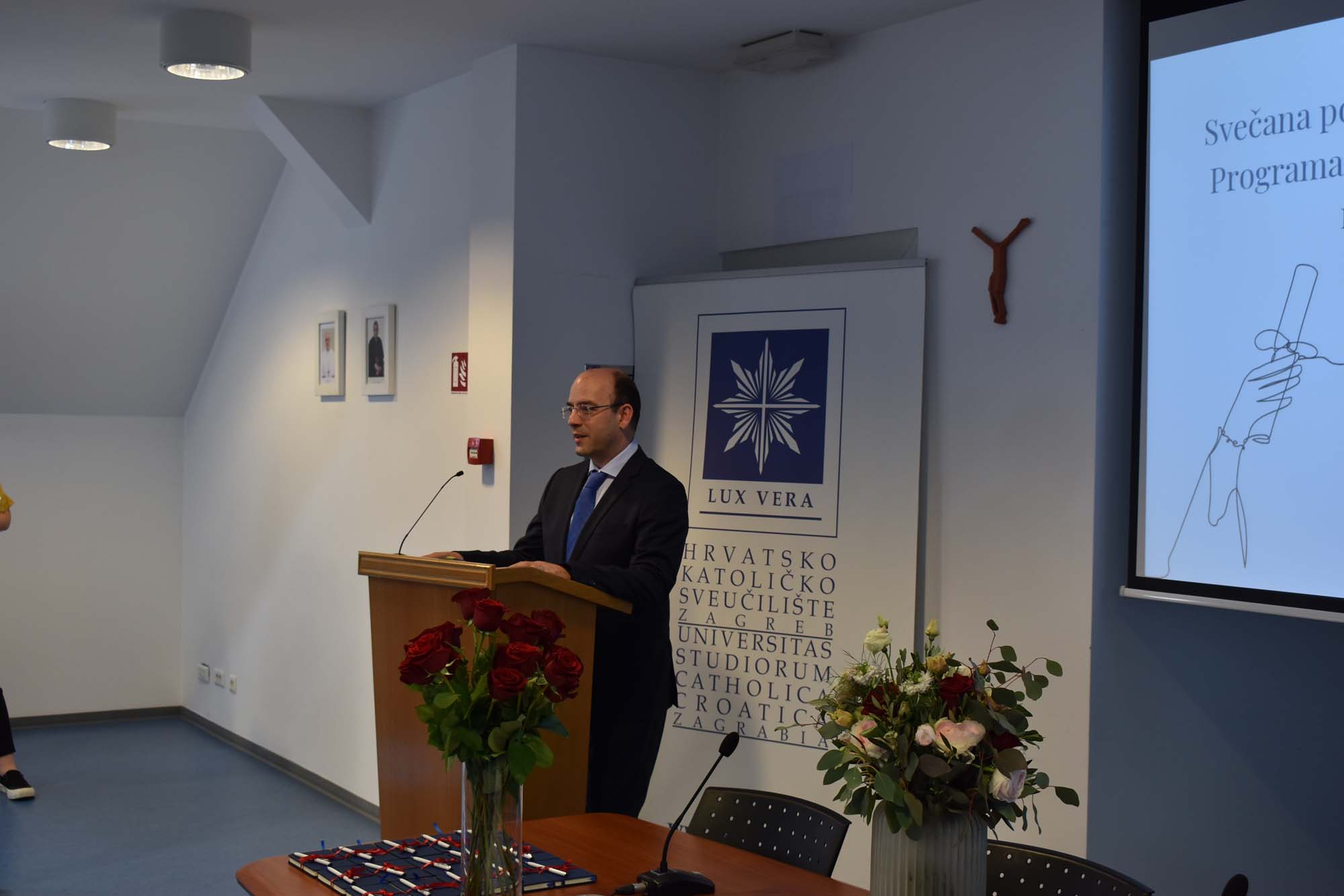Prisutnima se u ime Uprave Hrvatskog katoličkog sveučilišta obratio prorektor za međunarodnu suradnju prof. dr. sc. Hrvoje Štefančić, čestitajući im što su uspješno i taj dio svog obrazovanja uspješno priveli kraju.