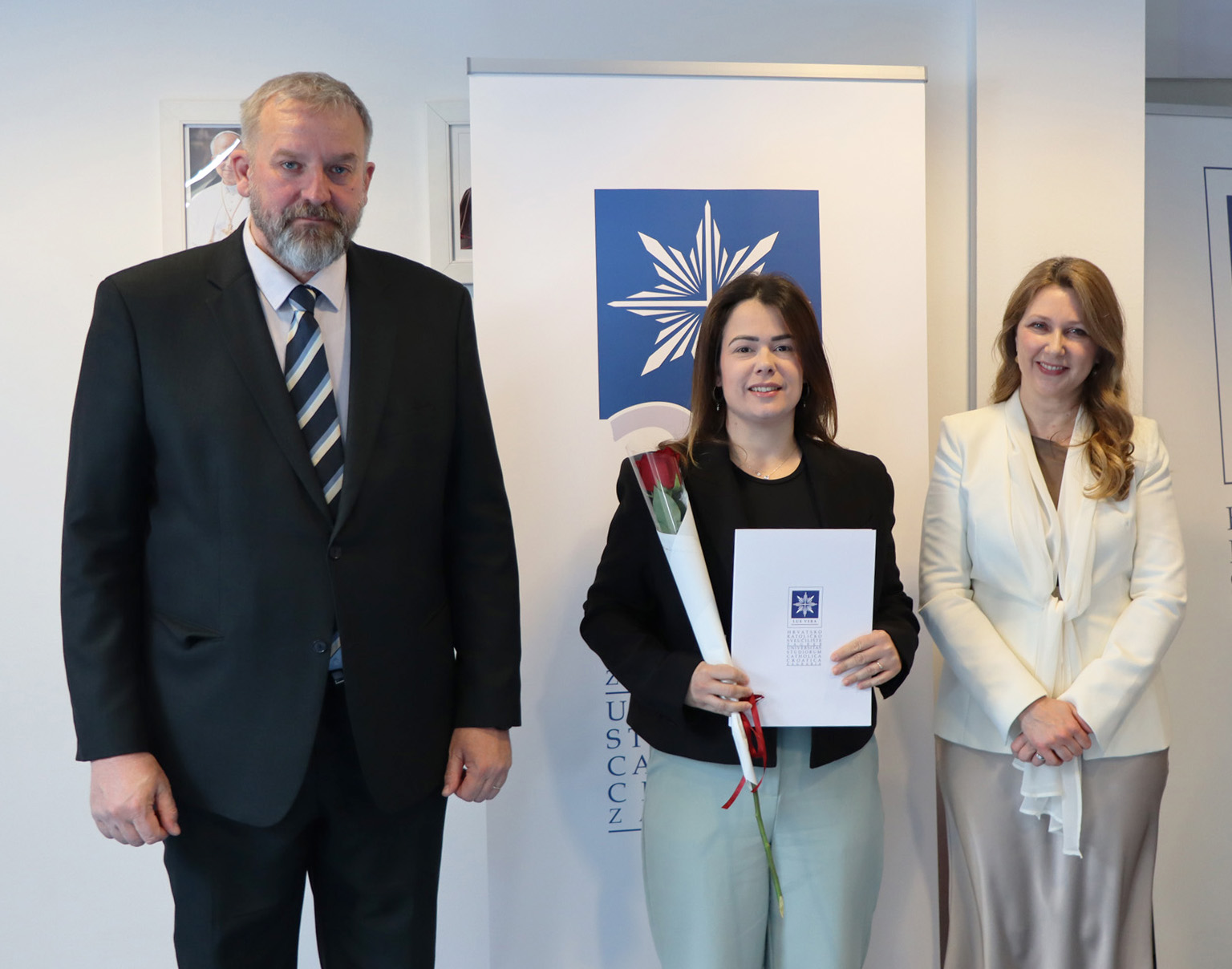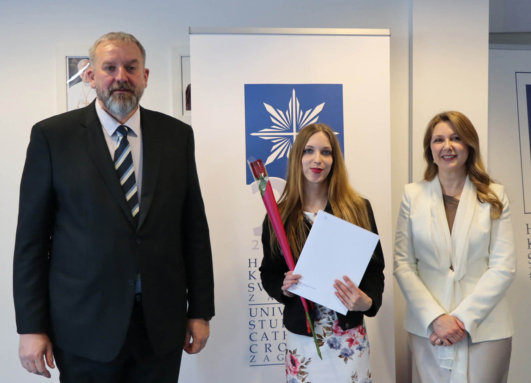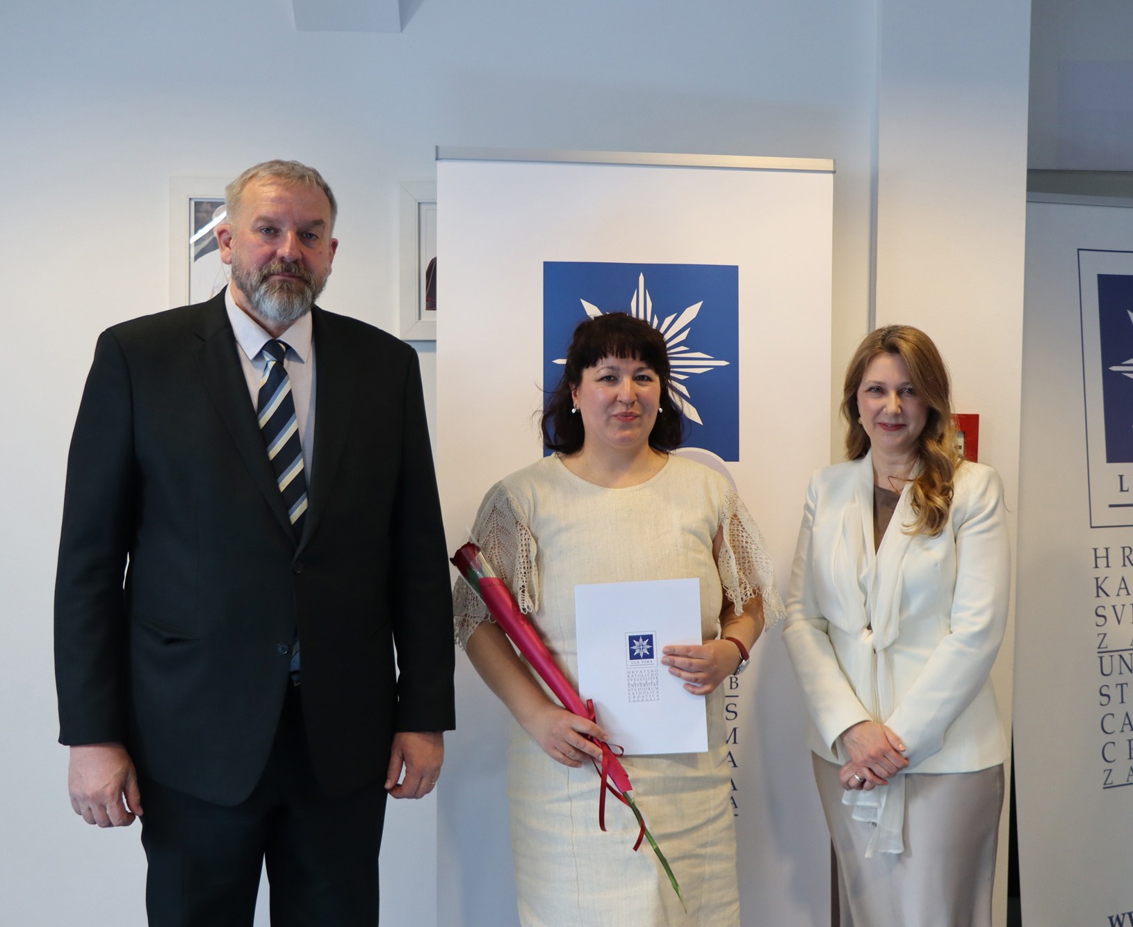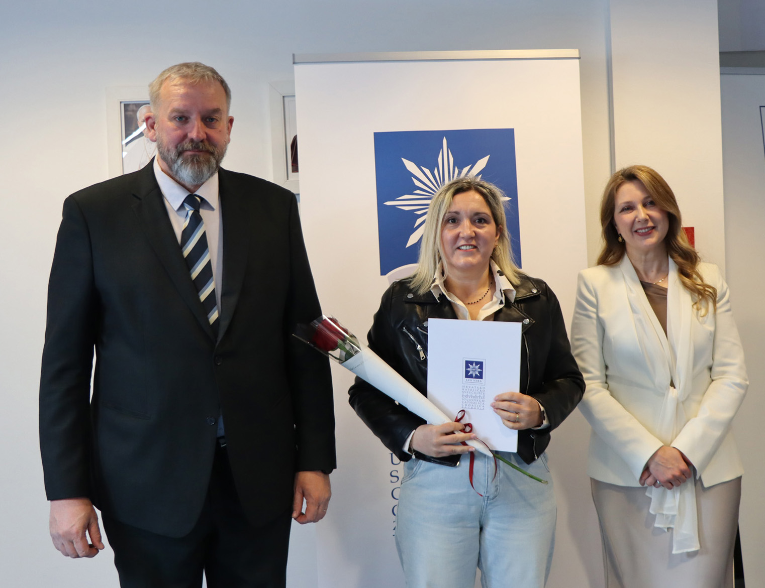 Okupljenim polaznicima, njihovim obiteljima i prijateljima u ime rektora Hrvatskoga katoličkog sveučilišta obratili su se prof. dr. sc. Roko Mišetić, prorektor za nastavu i voditeljica Programa doc. dr. sc. Miriam Mary Brgles.