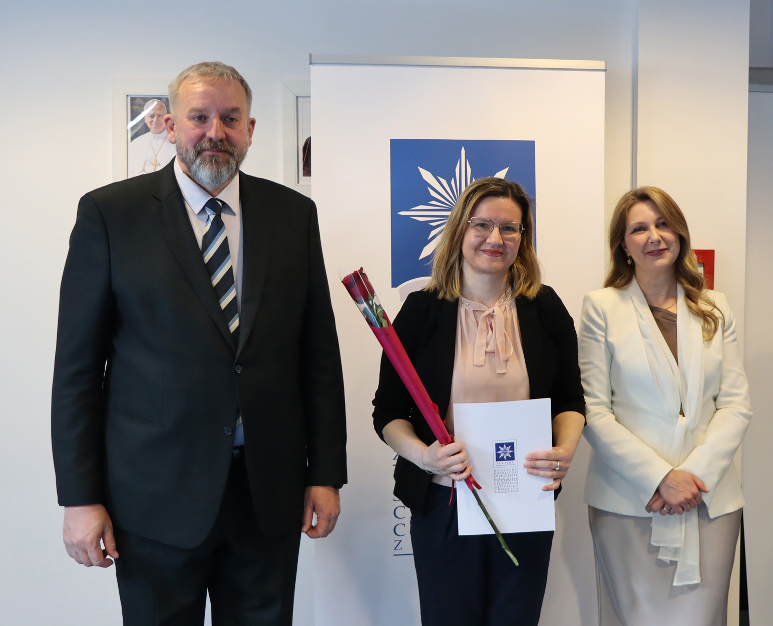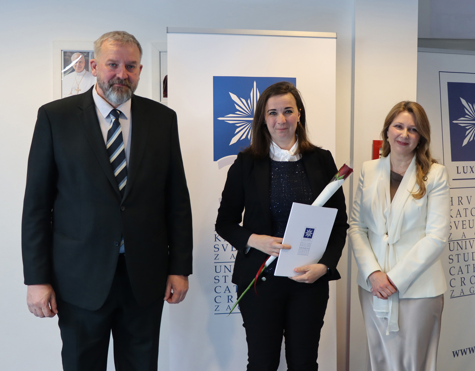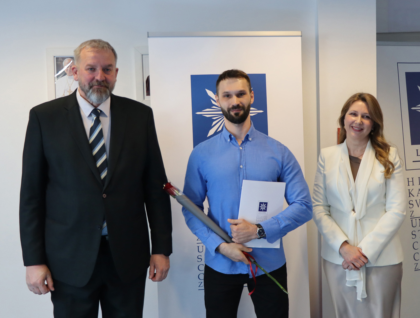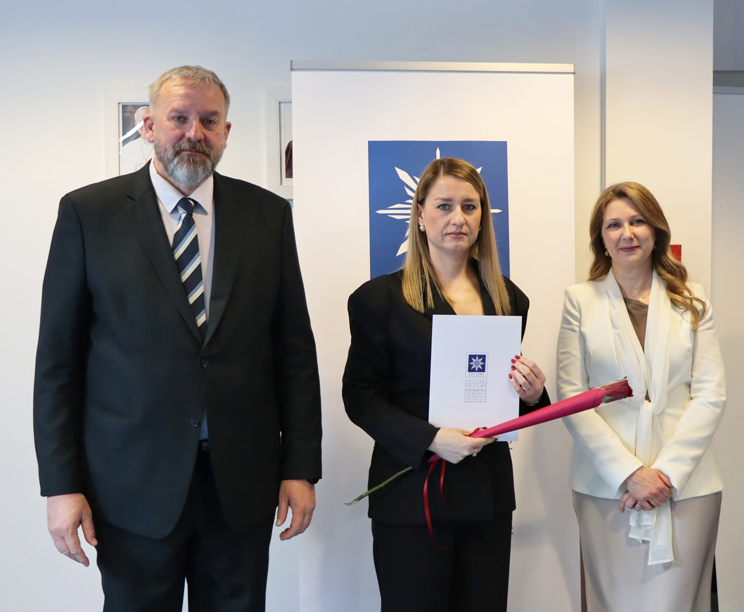 Okupljenim polaznicima, njihovim obiteljima i prijateljima u ime rektora Hrvatskoga katoličkog sveučilišta obratili su se prof. dr. sc. Roko Mišetić, prorektor za nastavu i voditeljica Programa doc. dr. sc. Miriam Mary Brgles.