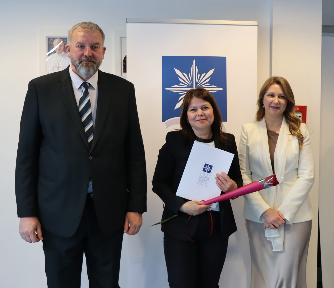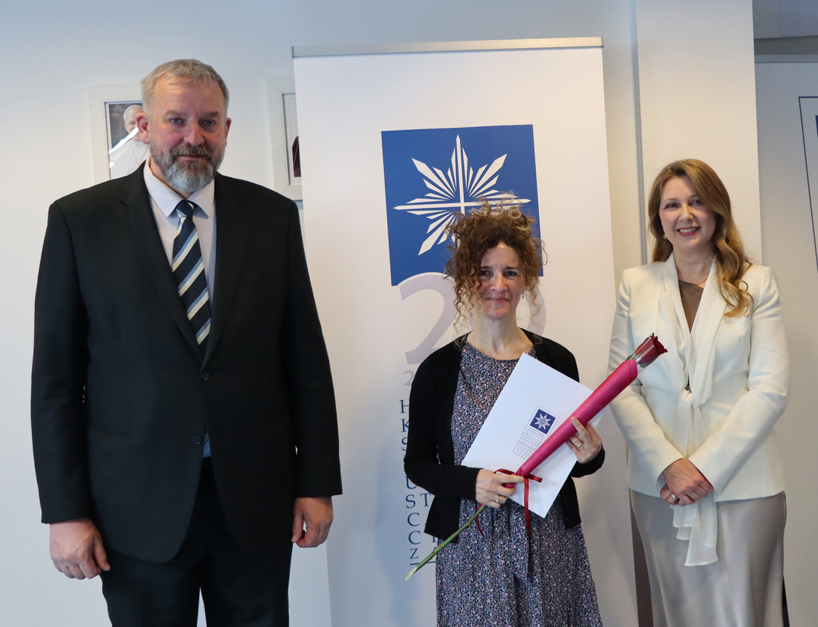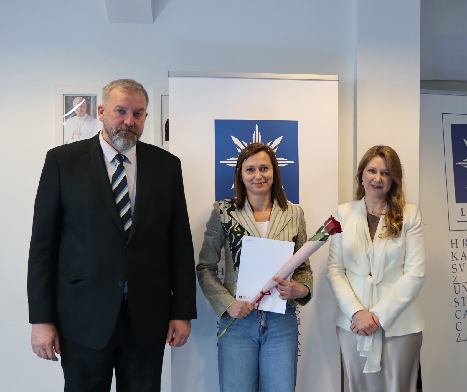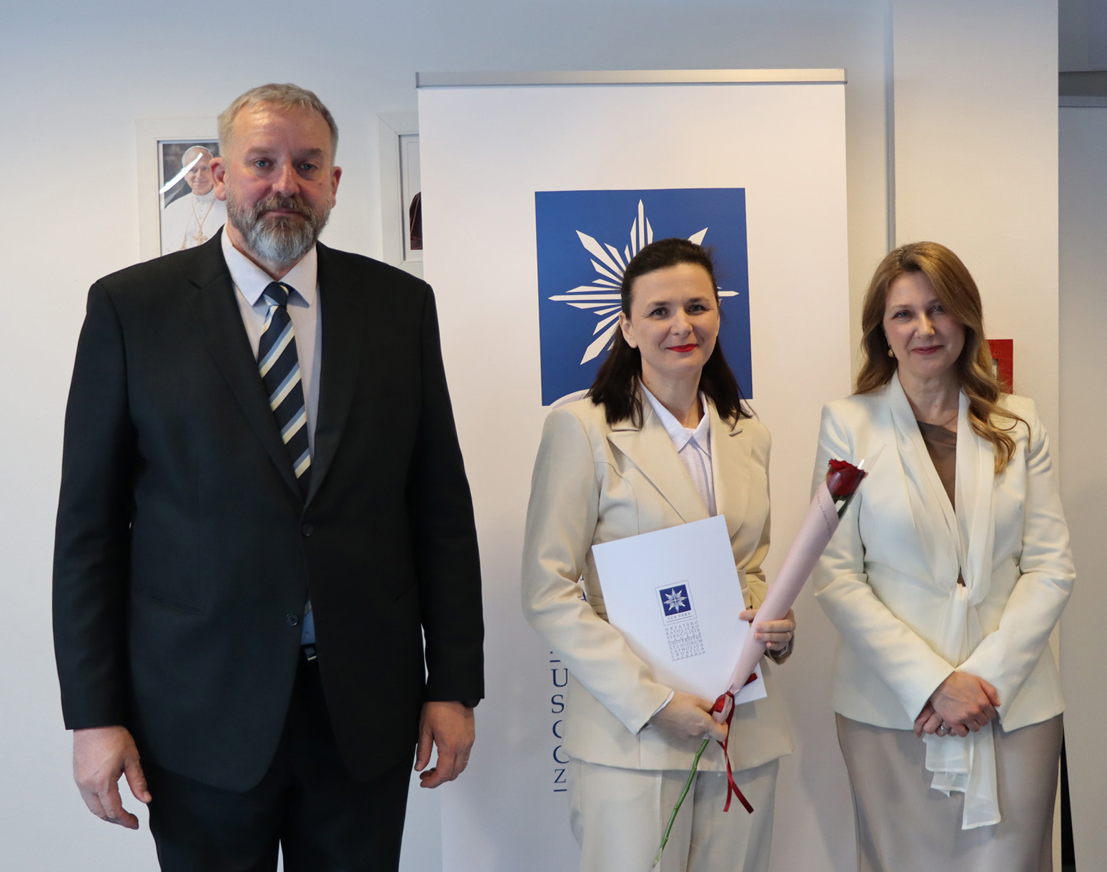 Okupljenim polaznicima, njihovim obiteljima i prijateljima u ime rektora Hrvatskoga katoličkog sveučilišta obratili su se prof. dr. sc. Roko Mišetić, prorektor za nastavu i voditeljica Programa doc. dr. sc. Miriam Mary Brgles.