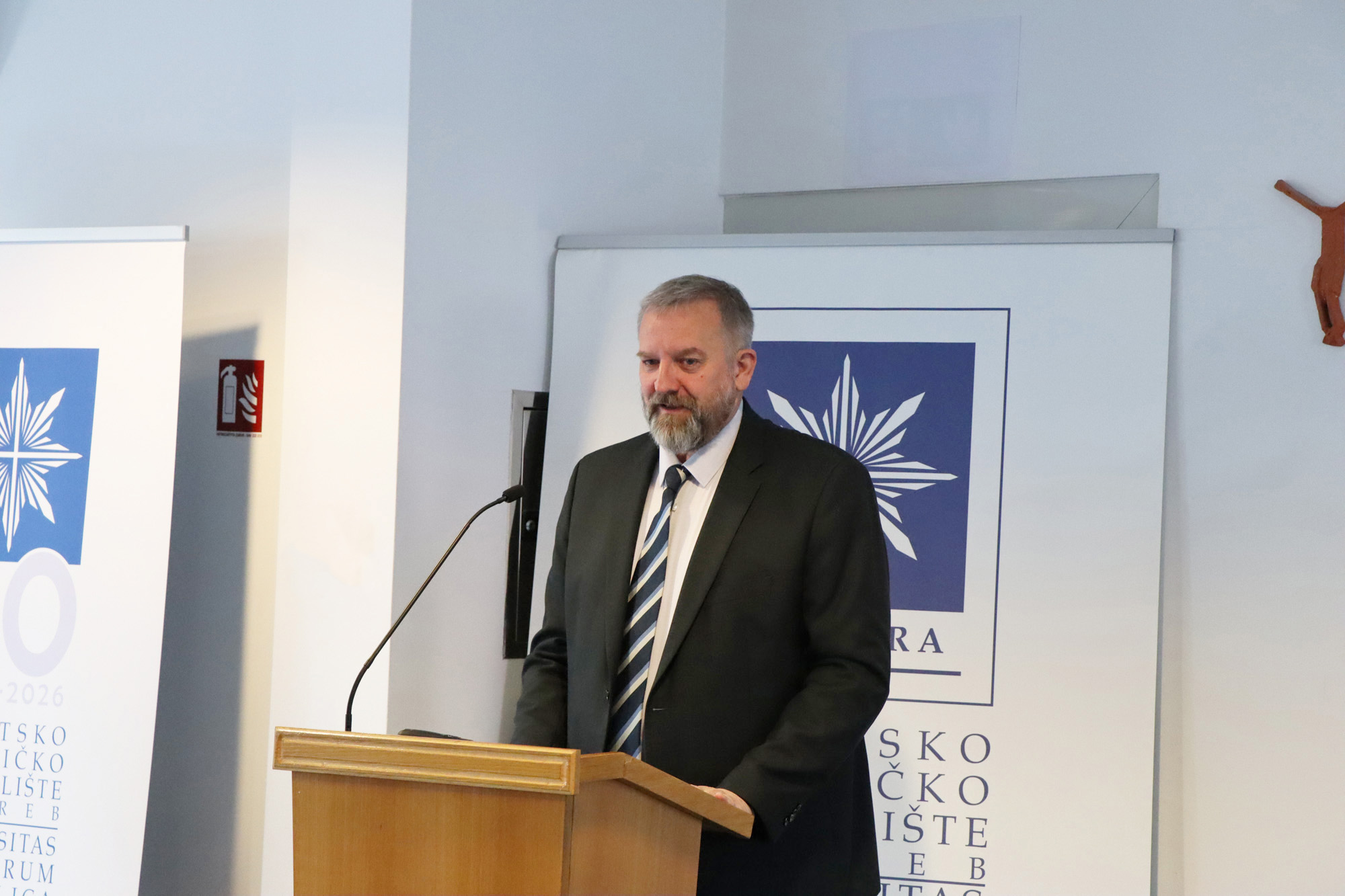 Polaznike i sve prisutne pozdravila je voditeljica Programa, doc. dr. sc. Miriam Mary Brgles. U svom se obraćanju osvrnula na vrline potrebne nastavnicima, referirajući se tragom misli pape Franje iz enciklike Fratelli Tutti: „Dok danas svijet obilježavaju ratovi, konflikti i društvene krize, na prvome mjestu, ne smijemo zaboraviti našu prošlost. Upozoreni smo da raste opasnost gubitka povijesne svijesti kod mladih. Ako djecu učimo da zaborave svoje korijene, tradiciju i iskustva prethodnih generacija, otvaramo prostor za površno mišljenje, besciljni individualizam i manipulacije ideologija koje traže poslušne i neinformirane ljude. Kao nastavnici, imamo odgovornost da odgoj i obrazovanje ne budu samo prijenos informacija, usklađivanje brojeva, nego i temelj za dobre odnose, razvijanje kritičkog mišljenja, solidarnosti, odgovornosti i osjećaja pripadnosti zajednici“, zaključila je doc. Brgles.