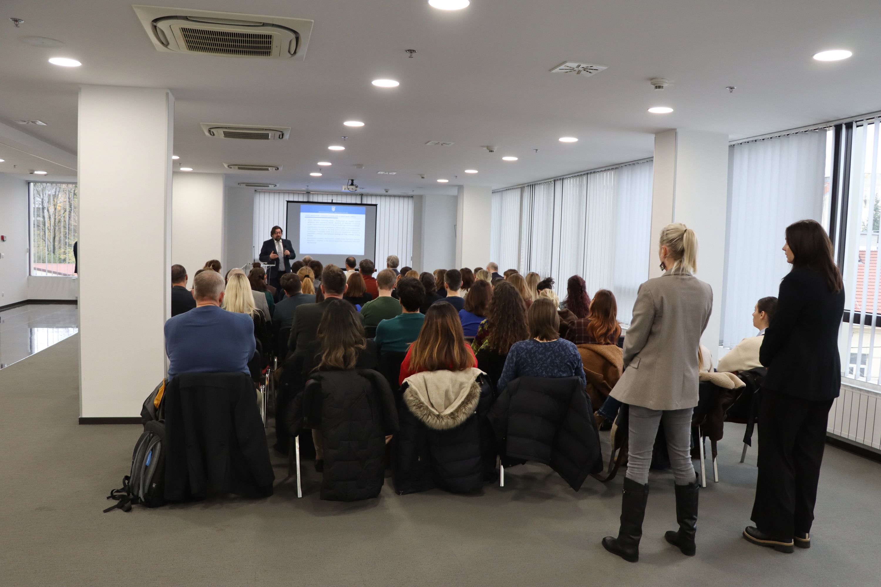 Stipendijske mogućnosti koje nudi BAYHOST (Bayerisches Hochschulzentrum für Mittel-, Ost- und Südosteuropa) predstavio je Nikolas Djukić sa Sveučilišta u Regensburgu, posebno istaknuvši potporu za studijske i istraživačke boravke u Bavarskoj. Nadalje, Violeta Vidaček s Fakulteta organizacije i informatike predstavila je COIL (Collaborative Online International Learning) — model koji studentima omogućuje međunarodnu suradnju u nastavi putem digitalnih alata, bez potrebe za fizičkom mobilnošću.
