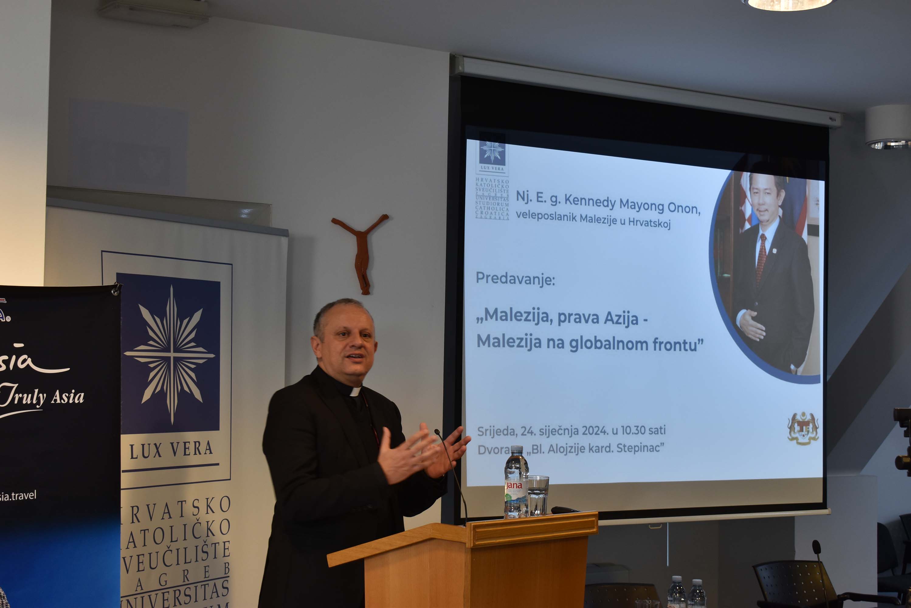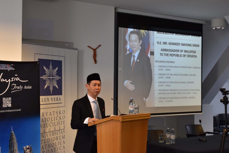 U srijedu 24. siječnja 2024. u dvorani „Blaženi Alojzije kard. Stepinac“ na Hrvatskom katoličkom sveučilištu Nj.E. g. Kennedy Mayong Onon, veleposlanik Malezije u Hrvatskoj održao je predavanje na engleskom jeziku „Malezija, prava Azija – Malezija na globalnom frontu“ .