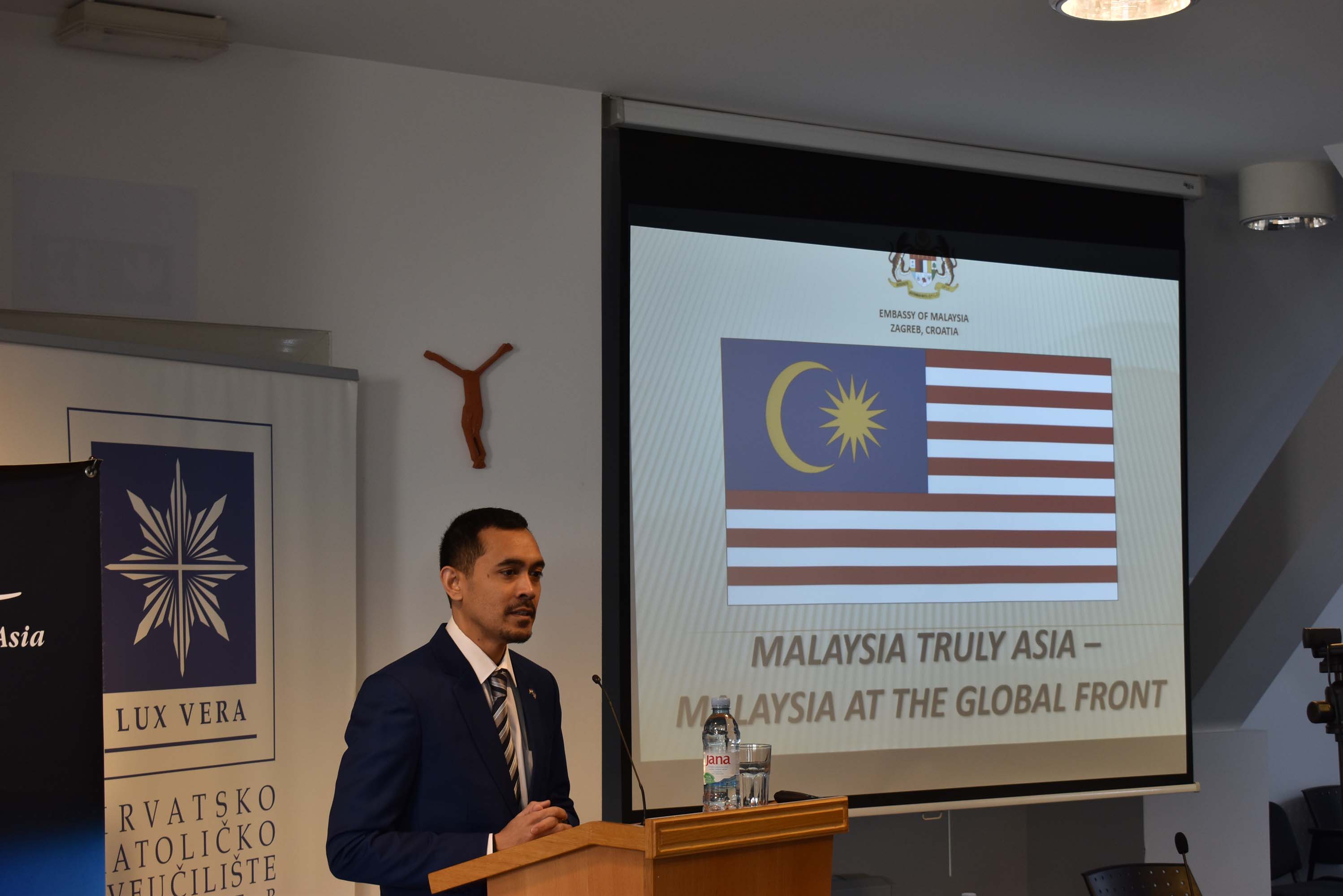 Savjetnik u Veleposlanstvu Malezije g. Johan Ikram bin Ahmad Rusli održao je uvodno predavanje u kojemu je predstavio Maleziju kao državu te njezine specifičnosti i sličnosti s Hrvatskom. "Malezija ja zaista prava zemlja Azije, bogata multikulturalnošću, netaknutom prirodom, težnjom za tehnološkim napretkom, a od Hrvatske može još puno naučiti u pogledu turizma i veselimo se daljnjoj suradnji", zaključio je g. Johan.