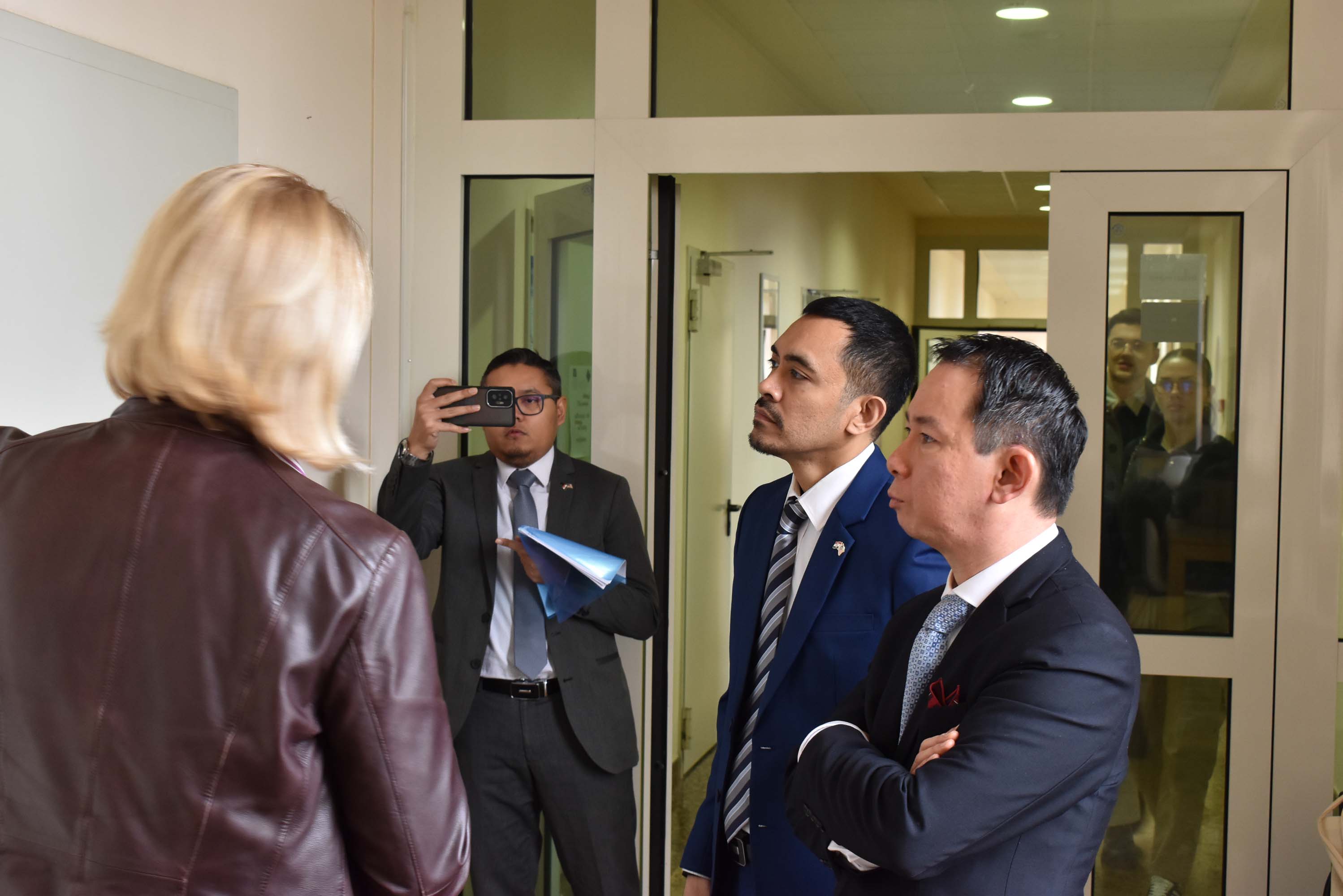 Nakon predavanja, veleposlanik Malezije i njegov savjetnik razgledali su izložbu "Neizdane diplome" posvećenu poginulim ukrajinskim studentima izloženu na prvom katu Hrvatskog katoličkog sveučilišta.