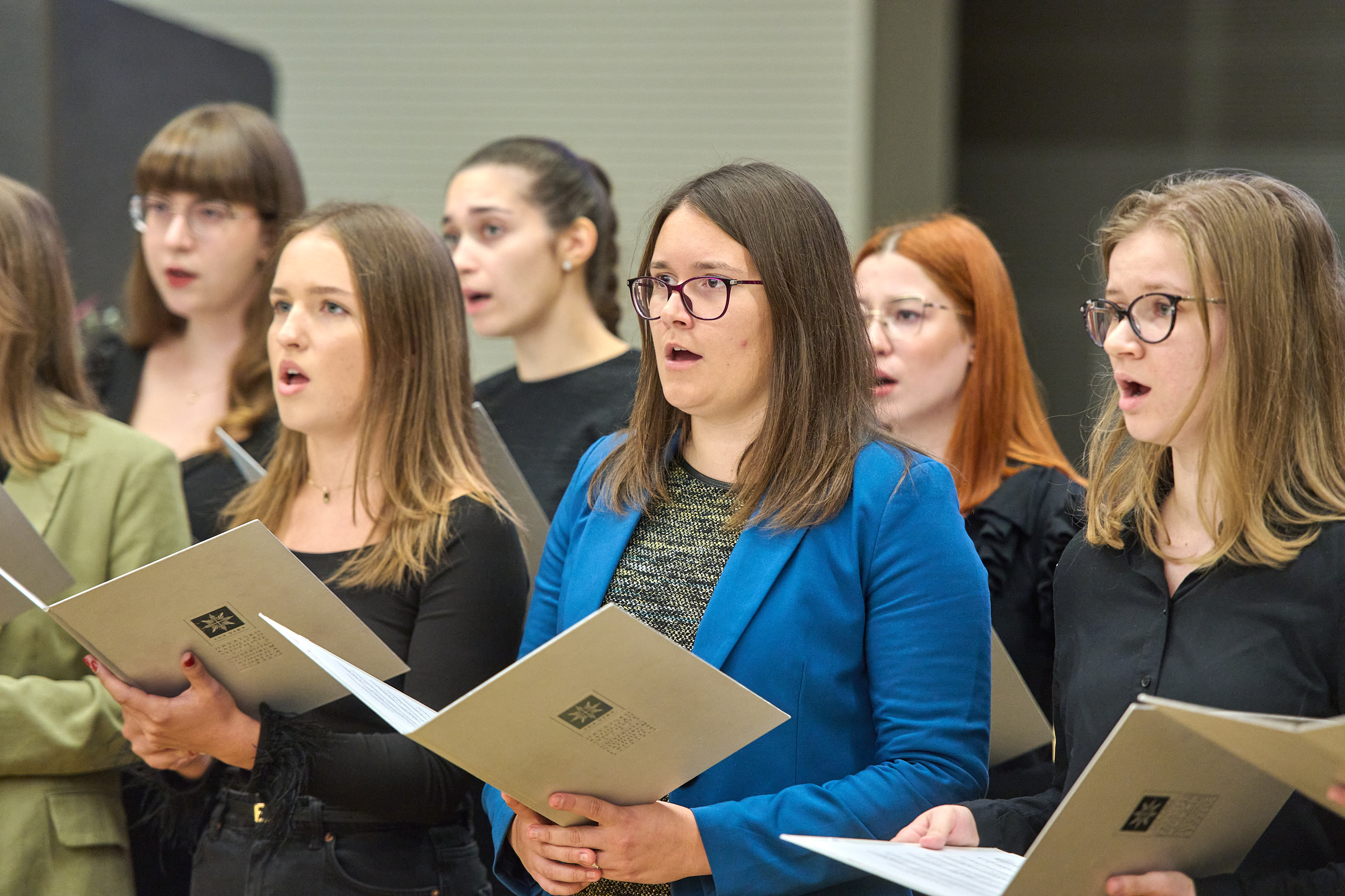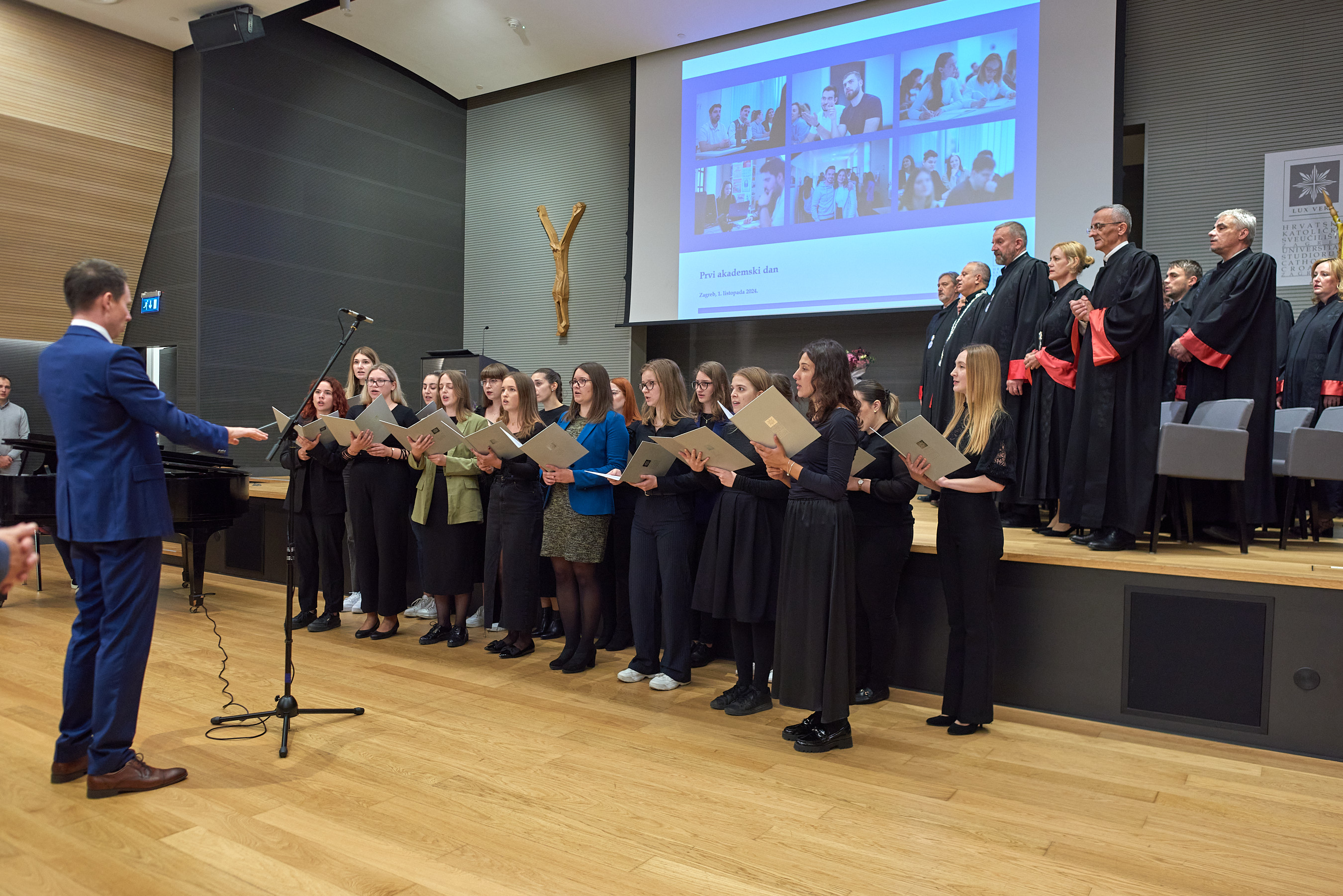 Svojim skladnim pjevanjem sveto misno slavlje animirao je Pjevački zbor Hrvatskog katoličkog sveučilišta Chorus Unicath i okupljeni članovi akademske zajednice HKS-a.