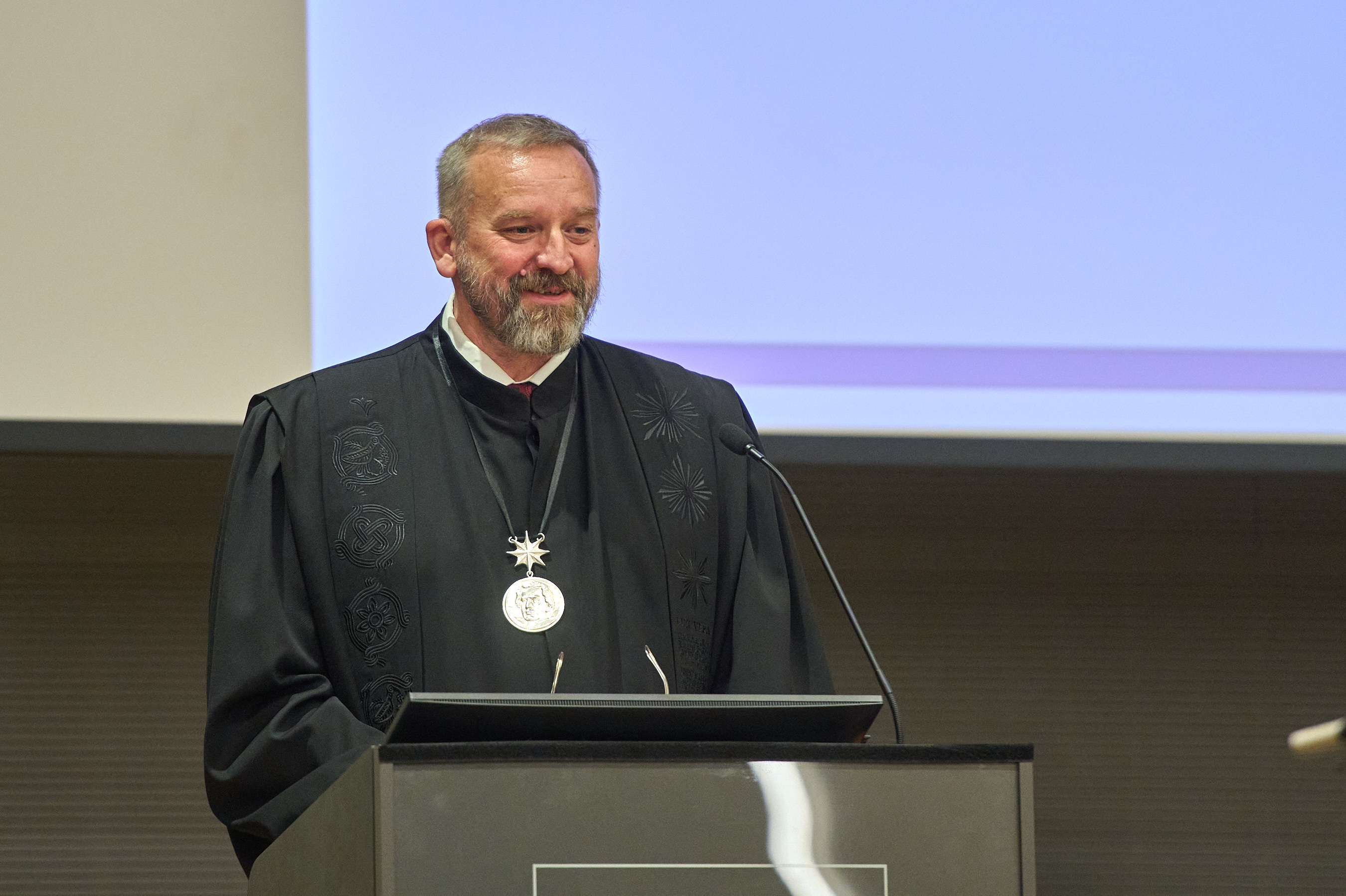 U ime čitave akademske zajednice Hrvatskog katoličkog sveučilišta sve okupljene pozdravio je prof. dr. sc. Željko Tanjić, rektor Hrvatskog katoličkog sveučilišta. Rektor je u svom govoru istaknuo kako se danas spominjemo svete Male Terezije od Djeteta Isusa, svetice čiji je život bio putokaz mnogima i svjedočanstvo kako treba biti predan u volju Božju. „Od svete Male Terezije možemo naučiti kao je važno svakodnevno koračati u poniznosti i poslušnosti. Upravo s tom sviješću i ovim svečanim akademskim činom započinjemo petnaestu po redu akademsku godinu na našem Sveučilištu“ – rekao je rektor Tanjić. „Na početku svog akademskog života pored svih znanja, vještina i svega onoga što želite naučiti, pozivam vas da zajedno dobro izvršimo zajedničku zadaću. Prva zadaća našeg sveučilišta je da učeći i studirajući na svojim odjelima i fakultetu i kroz godine pred nama pomažemo jedni drugima činiti dobro. To je temeljno poslanje katoličkog sveučilišta“ – istaknuo je rektor, nadovezavši se na govor pape Franje u Belgiji koji kaže da je temeljno poslanje katoličkih sveučilišta pružiti cjelovito obrazovanje kako bi dobili potrebna sredstva za tumačenje sadašnjosti, puni nade da bi mogli planirati svoju osobnu, ali i zajedničku budućnost. „Vi ste, dragi studenti naša budućnost. Sveučilišta su po svojoj naravi pokretači novih ideja i poticaja za život i za razmišljanje, za izazove društva. Sveučilišta su mjesta rađanja novih znanja, odnosa i svega onoga što ćete ovdje zajedno sa svojim profesorima ostvariti“ ….“Zahvalan sam što ste odabrali naše Sveučilište na kojem ćete podijeliti svoje najljepše godine vaših mladih života. Bit će tu puno problema i izazova, ali i sretnih i nezaboravnih trenutaka. Na tom putu pratit će vas Božji blagoslov i zagovor našeg nebeskog zaštitnika blaženog Alojzija Stepinca“ – zaključio je rektor.