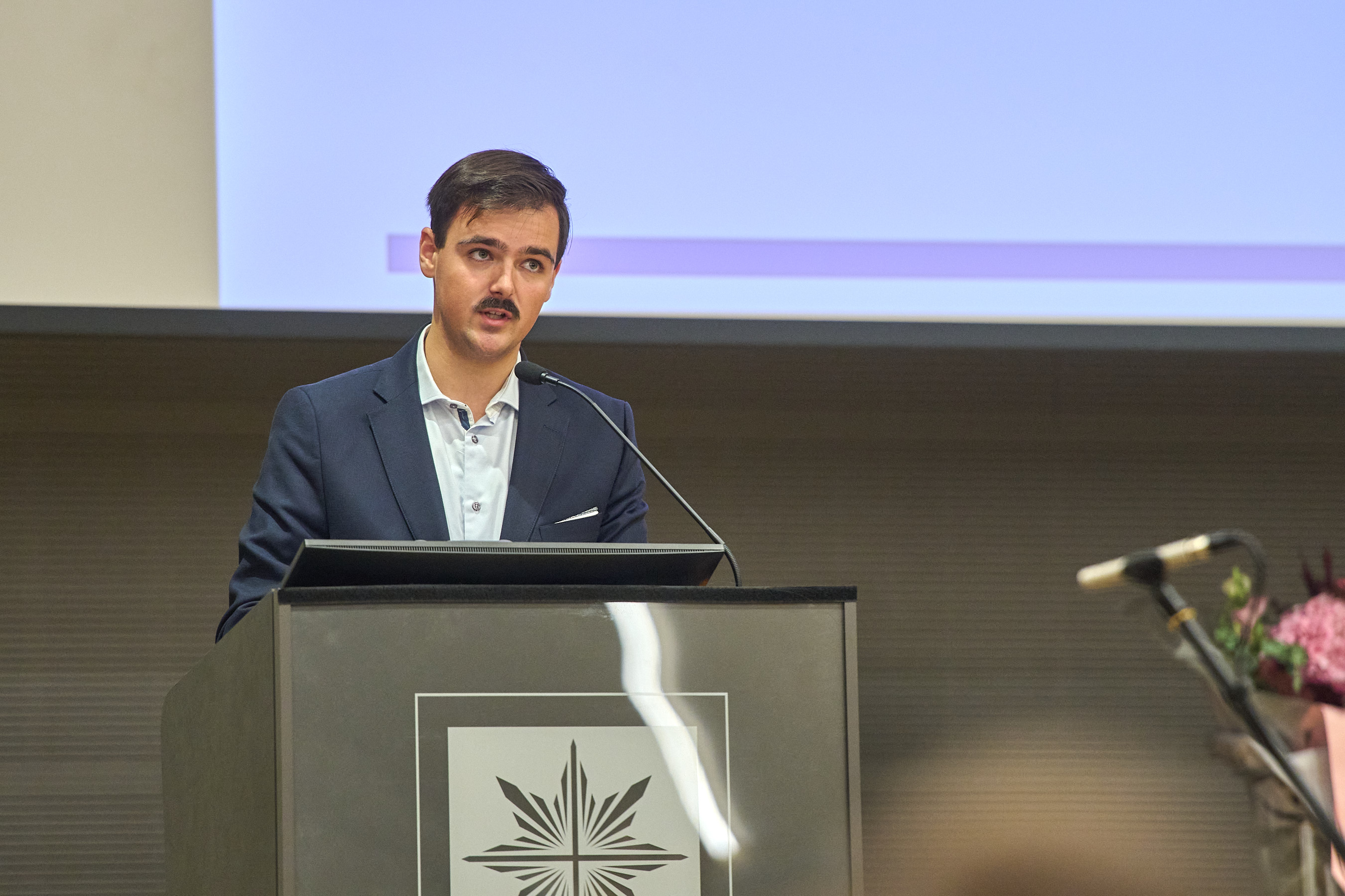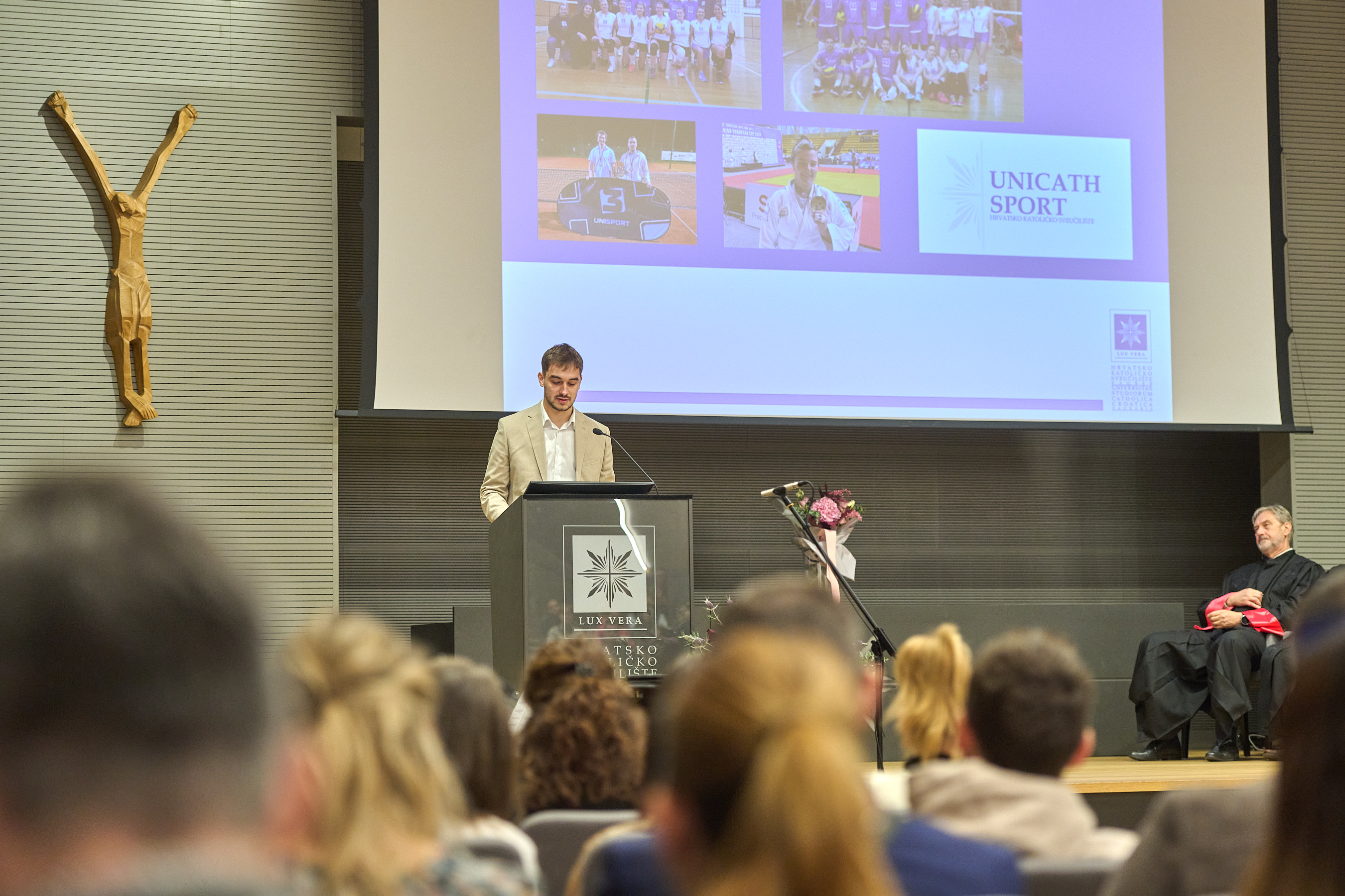 Kao predstavnik sportske zajednice HKS-a okupljenima se obratio Vid Belčić, student Sveučilišnog odjela za komunikologiju koji je istaknuo kako su svi dobrodošli u sportsku obitelj Hrvatskog katoličkog sveučilišta te da se veseli novim sportskim uspjesima koje će zajedno postizati.