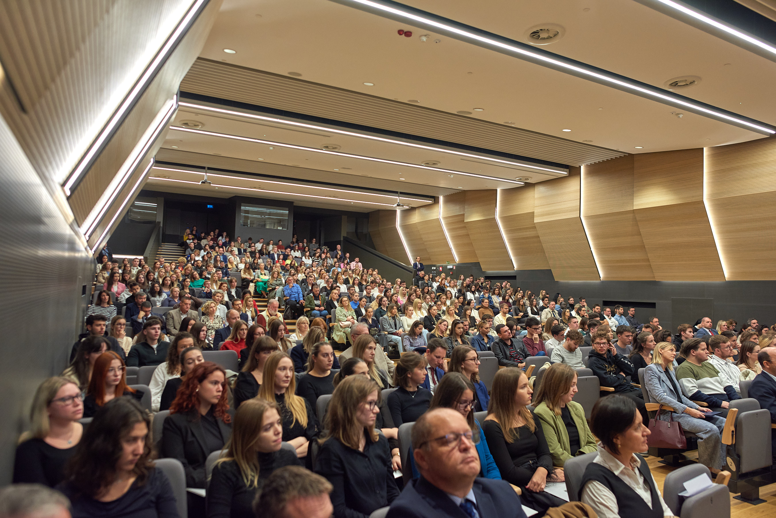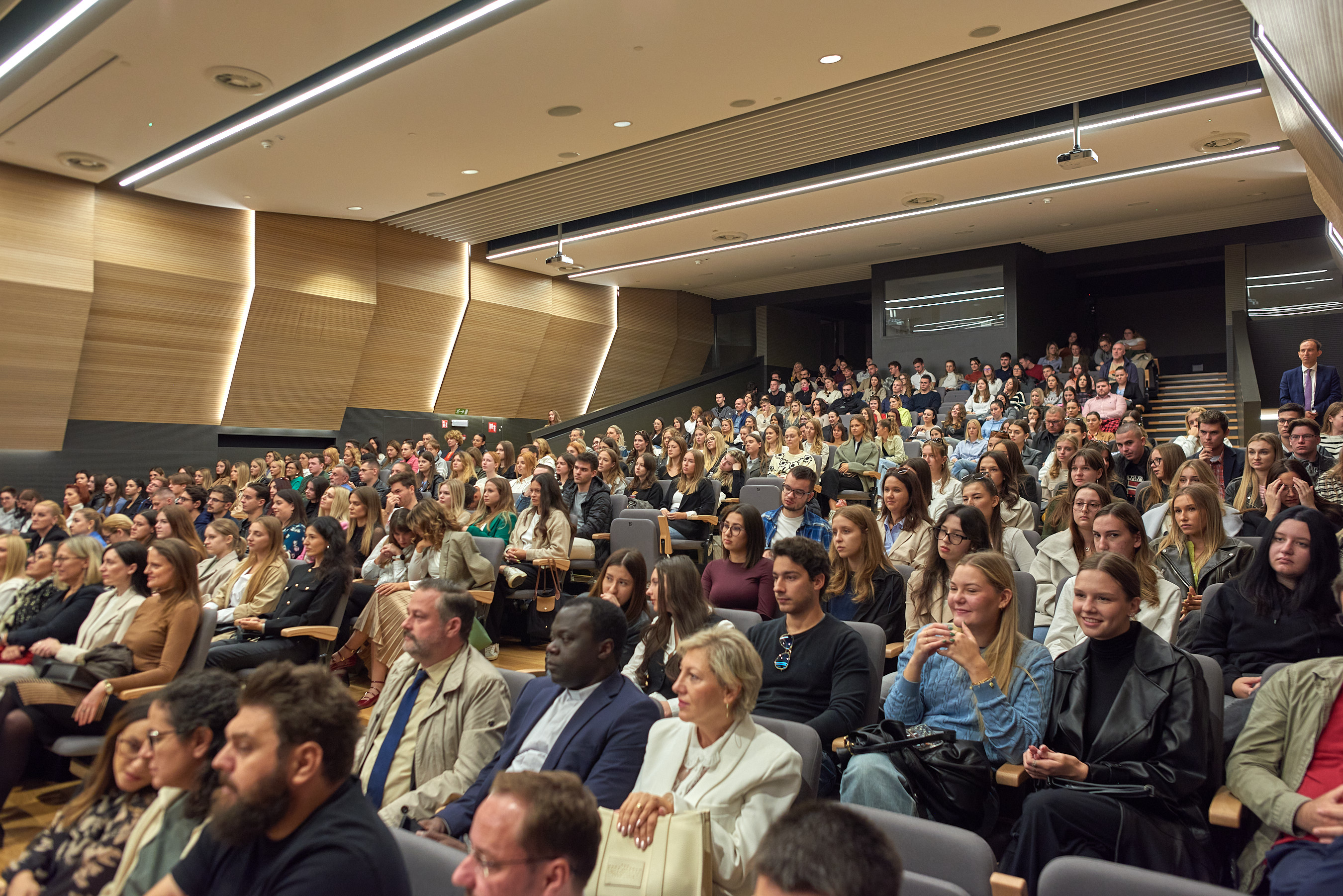 Prorektor za nastavu prof. dr. sc. Roko Mišetić pozdravio je okupljene nastavnike i studente te im je zaželio dobrodošlicu, istaknuvši važnost međusobne suradnje studenata, voditelja godišta, profesora, pročelnika Sveučilišnih odjela i sa starijim kolegama. „Mi kao akademska zajednica, sve naše službe i svi naši profesori, stojimo vam na raspolaganju. Ne postoji problem koji ne možemo zajedno riješiti. Poklonili ste nam povjerenje, a mi ćemo ga, nadamo se, opravdati“ – zaključio je prorektor Mišetić.