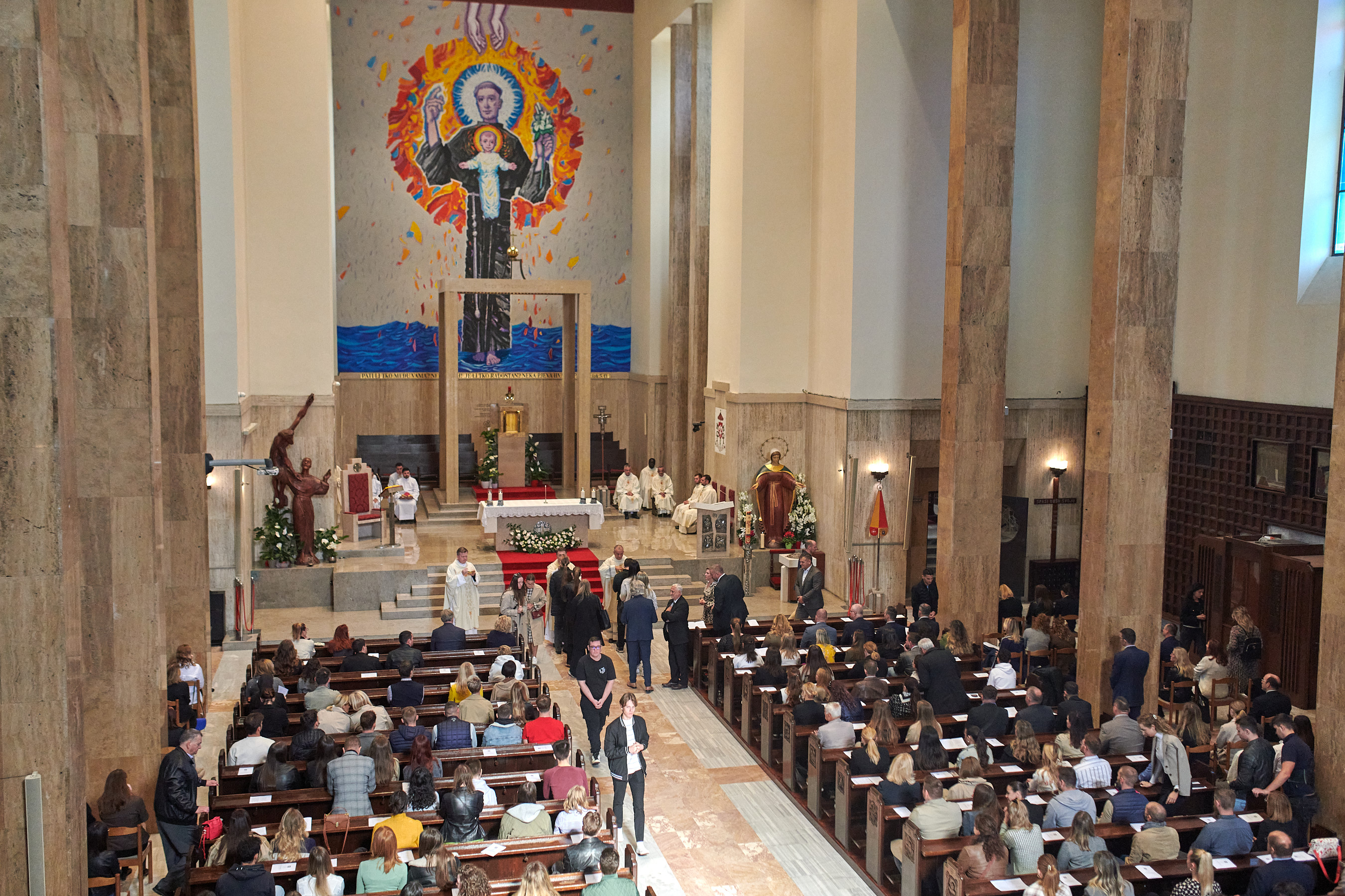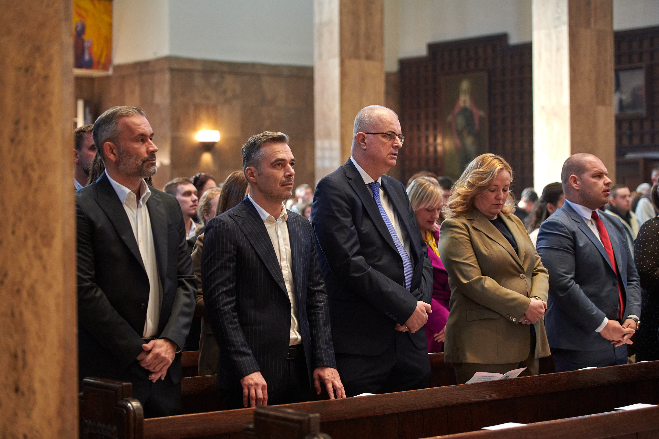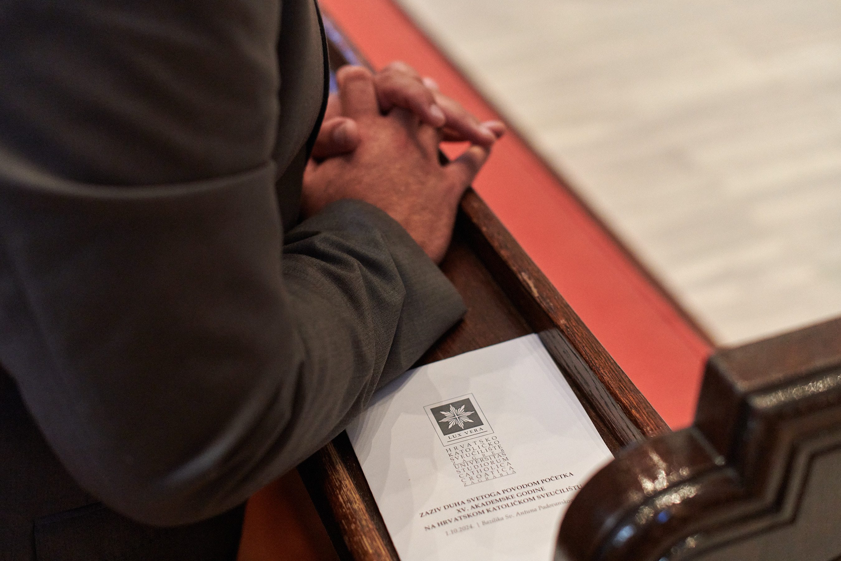 Sveto misno slavlje u crkvi Svetog Antuna Padovanskog na Svetom Duhu, kojem su prisustvovali prorektori, pročelnici, profesori, djelatnici i studenti Hrvatskog katoličkog sveučilišta, predvodio je mons. Ivan Šaško, izaslanik zagrebačkog nadbiskupa mons. Dražena Kutleše, pomoćni biskup zagrebački i prvi rektor HKS-a, u koncelebraciji s rektorom Hrvatskog katoličkog sveučilišta prof. dr. sc. Željkom Tanjićem, doc. dr. sc. Krunoslavom Novakom, generalnim tajnikom Hrvatske biskupske konferencije, prof. dr. sc. Antom Crnčevićem, prorektorom za kvalitetu, identitet i poslanje Sveučilišta, vlč. Branimirom Jagodićem, sveučilišnim kapelanom, vlč. Filipom Šešekom, povjerenikom zagrebačke nadbiskupije za mlade, pastoral športaša i koordinatorom dušobrižništva za studente u Zagrebu, fra Zlatkom Vlahekom, prof. dr. sc. Jerkom Valkovićem sa Sveučilišnog odjela za komunikologiju te doc. dr. sc. Odilonom Singboom s Katedre za teologiju.