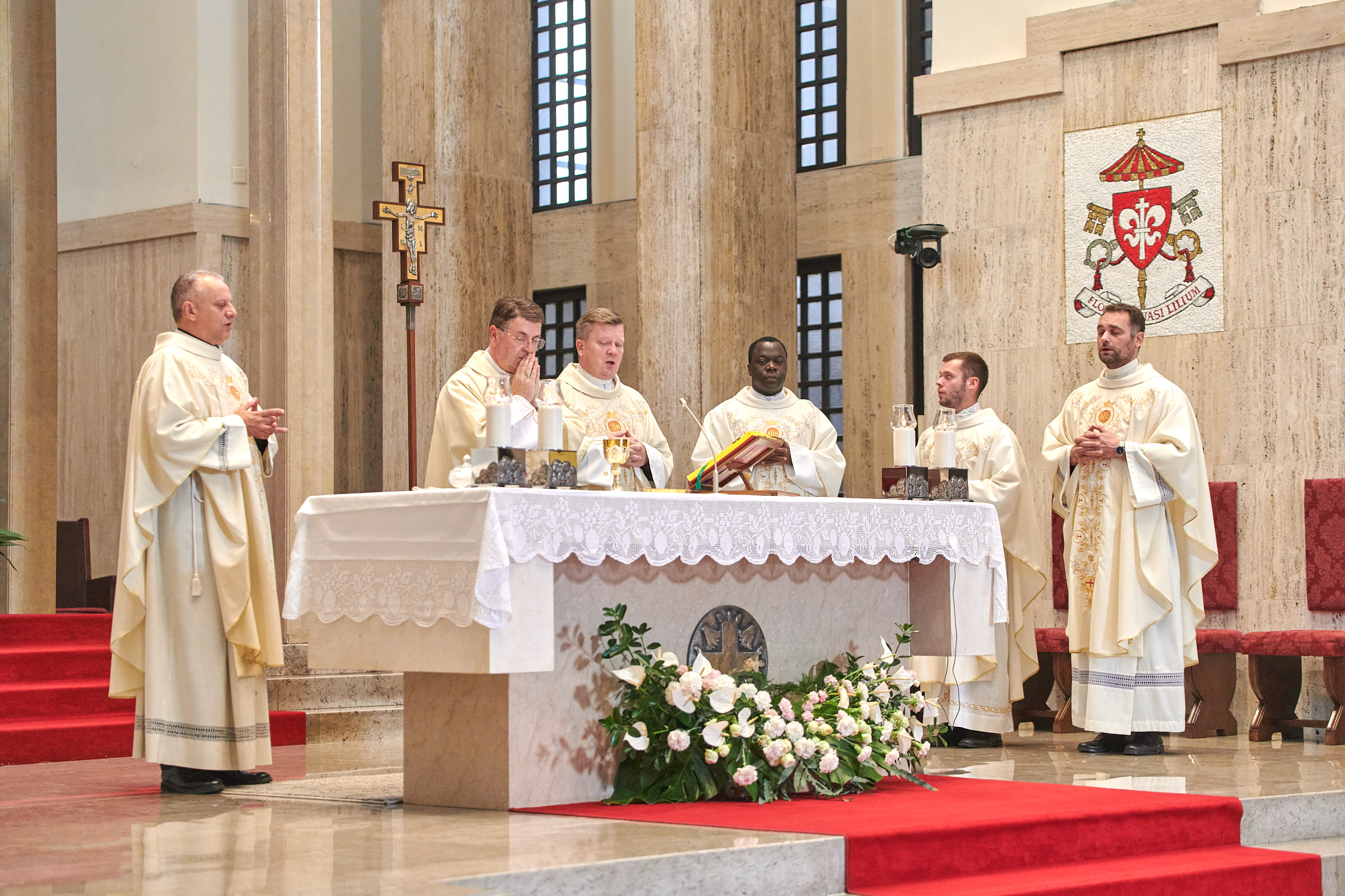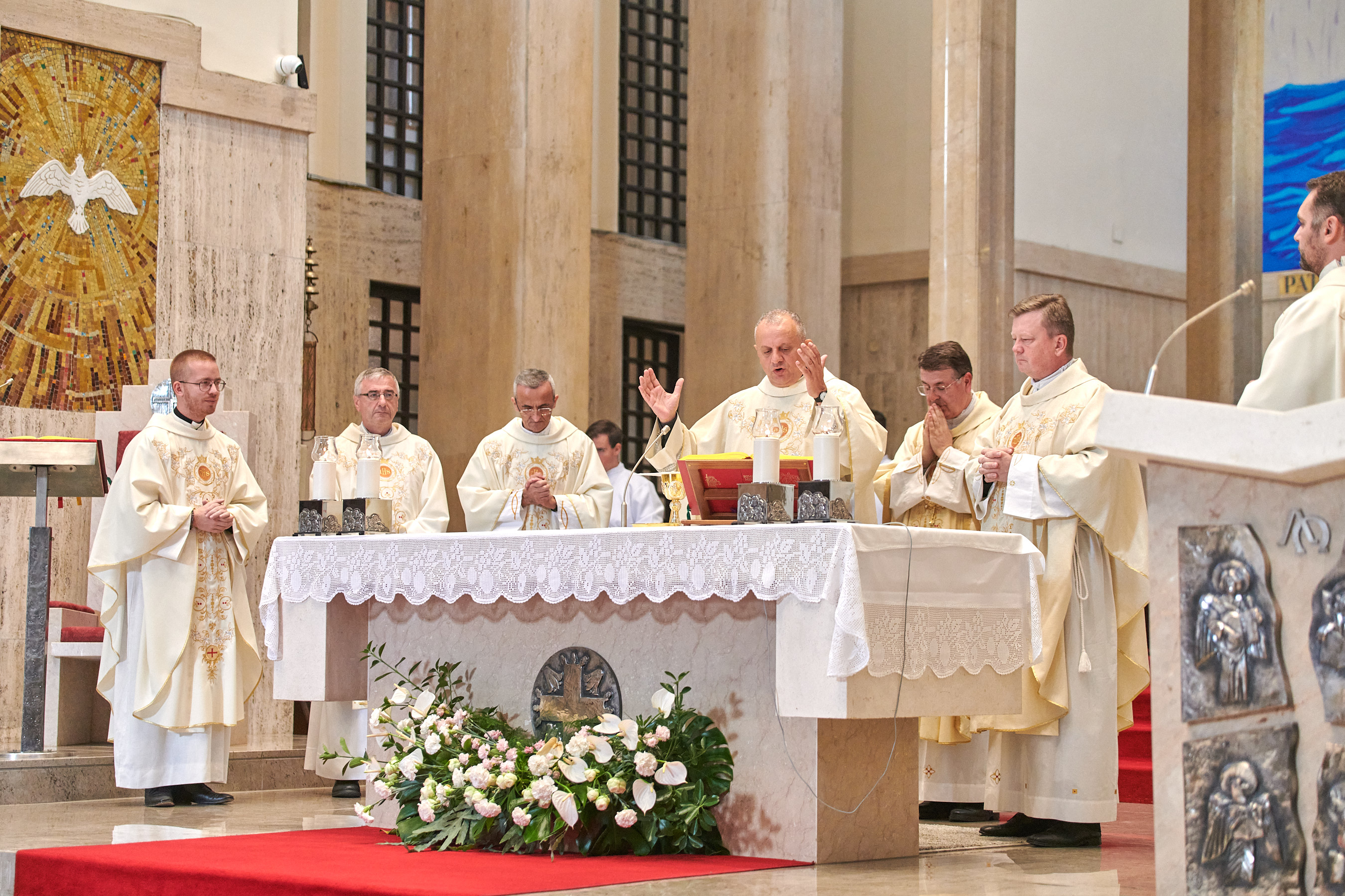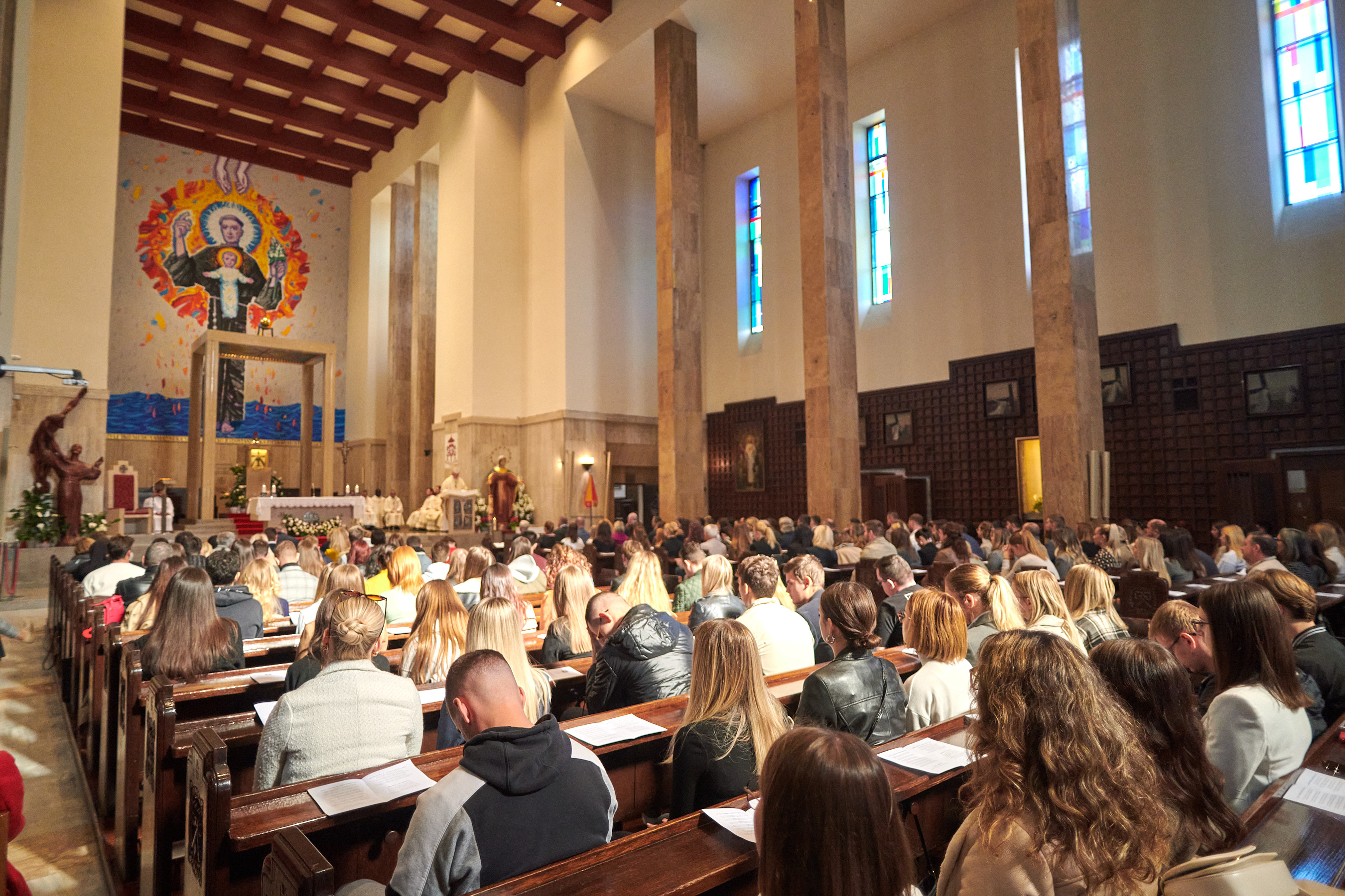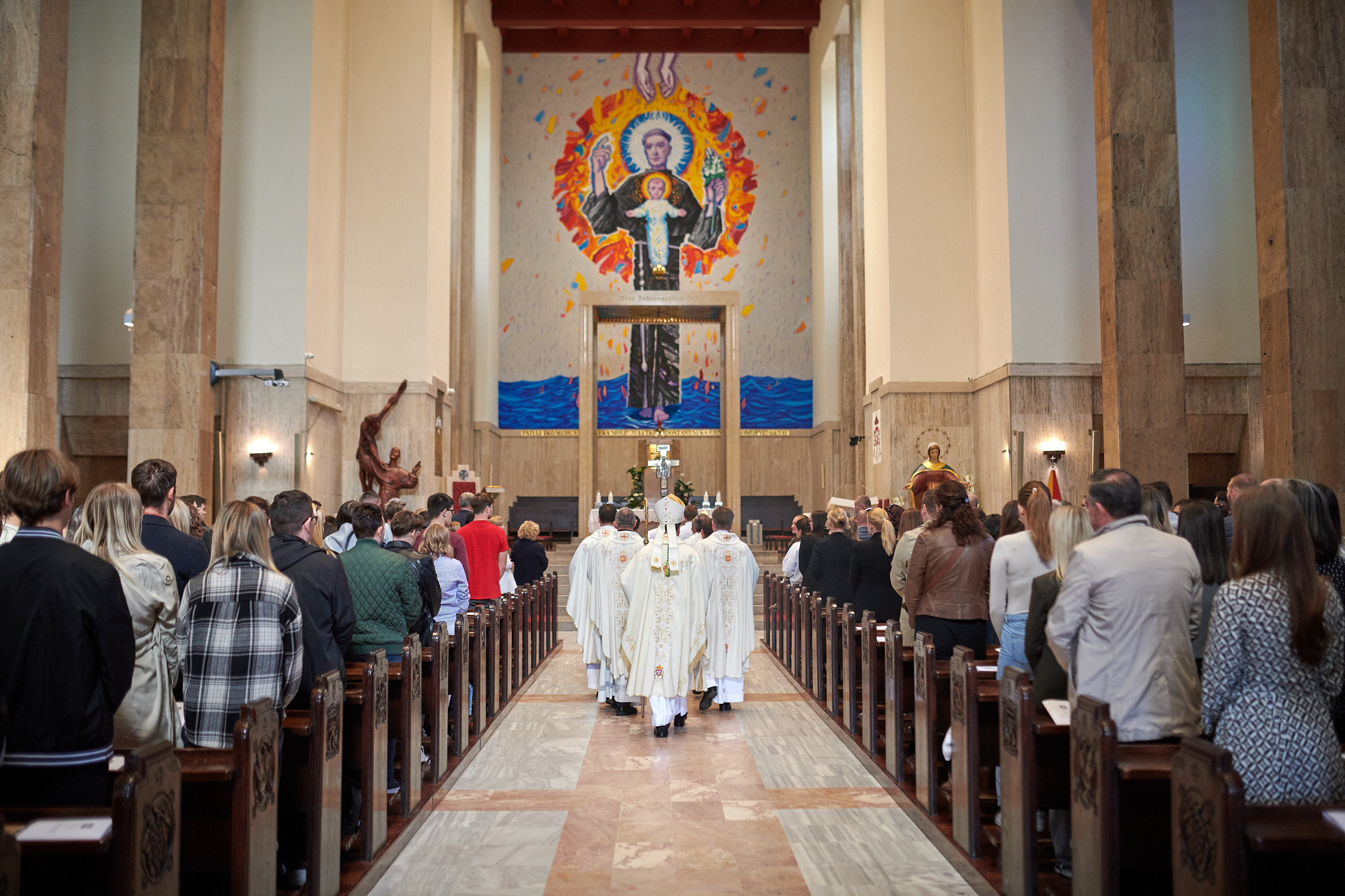 Sveto misno slavlje u crkvi Svetog Antuna Padovanskog na Svetom Duhu, kojem su prisustvovali prorektori, pročelnici, profesori, djelatnici i studenti Hrvatskog katoličkog sveučilišta, predvodio je mons. Ivan Šaško, izaslanik zagrebačkog nadbiskupa mons. Dražena Kutleše, pomoćni biskup zagrebački i prvi rektor HKS-a, u koncelebraciji s rektorom Hrvatskog katoličkog sveučilišta prof. dr. sc. Željkom Tanjićem, doc. dr. sc. Krunoslavom Novakom, generalnim tajnikom Hrvatske biskupske konferencije, prof. dr. sc. Antom Crnčevićem, prorektorom za kvalitetu, identitet i poslanje Sveučilišta, vlč. Branimirom Jagodićem, sveučilišnim kapelanom, vlč. Filipom Šešekom, povjerenikom zagrebačke nadbiskupije za mlade, pastoral športaša i koordinatorom dušobrižništva za studente u Zagrebu, fra Zlatkom Vlahekom, prof. dr. sc. Jerkom Valkovićem sa Sveučilišnog odjela za komunikologiju te doc. dr. sc. Odilonom Singboom s Katedre za teologiju.