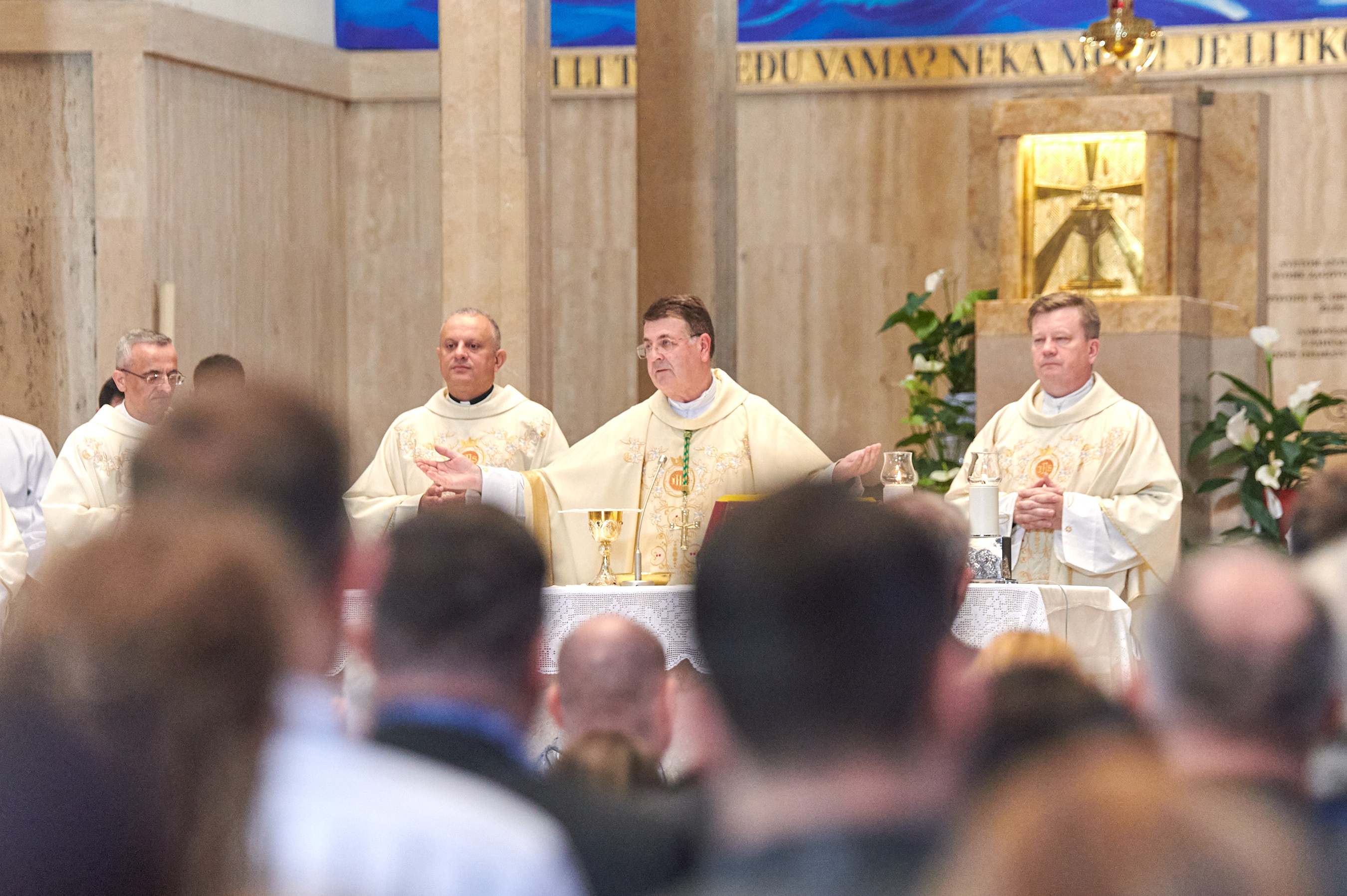 Mons. Ivan Šaško pozdravio je okupljene u ime Velikog kancelara mons. Dražena Kutleše, zagrebačkog nadbiskupa i metropolite, zaželjevši svima dobar početak nove akademske godine, koji je, kako je istaknuo mons. Šaško u svojoj homiliji, redovito podudaran s prvim danima mjeseca listopada koji su u liturgijskom kalendaru povezan s trima slavljima lako prepoznatljivih odlika: malenosti, nenametljivosti, punine siromaštva, privlačne blizine, utjehe i ohrabrenja te spomendana sv. Terezije, svetih Anđela čuvara i sv. Franje Asiškoga. „Prisjećajući se početaka našega Sveučilišta, redovito se sjetim malenosti od koje se krenulo, koju smo njegovali, znajući da se Bog po malenome očituje kao neizmjeran; da uzvisuje neznatne, da vidi iskrenost srca; znajući da u malenosti klija, raste, postaje vidljivom – nada“ … „U sveučilištima se obično gledaju rasadišta spoznaja, ustanove koje osposobljavaju ljude za tržište rada, susretišta nazora i kultura, ali smatram da je predivan poziv sveučilišta, osobito katoličkih sveučilišta biti rasadištima nade. Stoga, braćo i sestre, na ovom početku na kojemu Bog započinje s nama novi hod, pokušajmo se prepoznati u ogledalu nade“ – istaknuo je mons. Šaško.