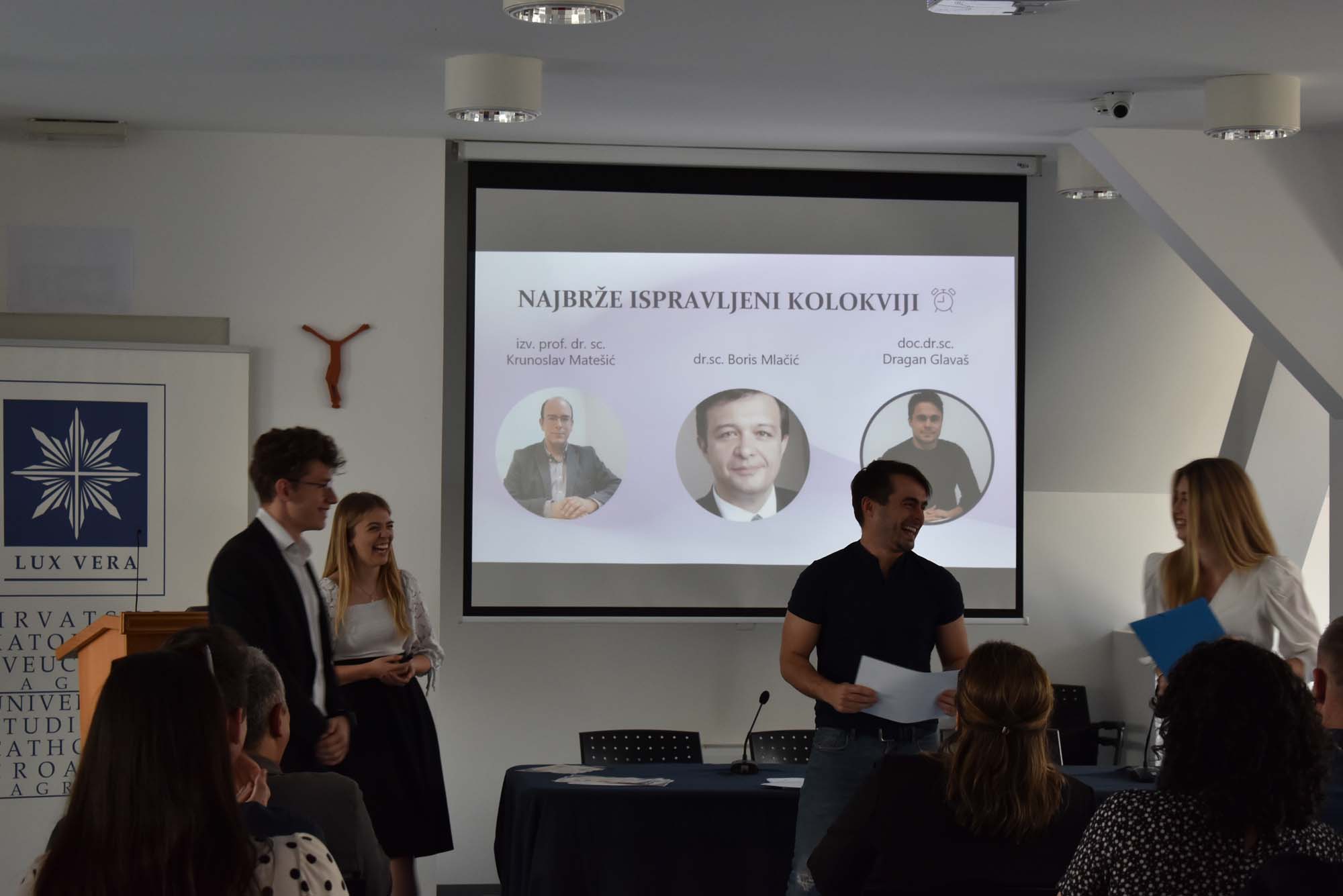 Studenti su pripremili prigodni program šaljivog sadržaja s montiranim video uratcima o svojem iskustvu studija tijekom vremena pandemije te gdje su zahvalili i nagradili svojim nastavnicima na strpljenju, angažmanu i ugodnoj suradnji protekle tri godine.