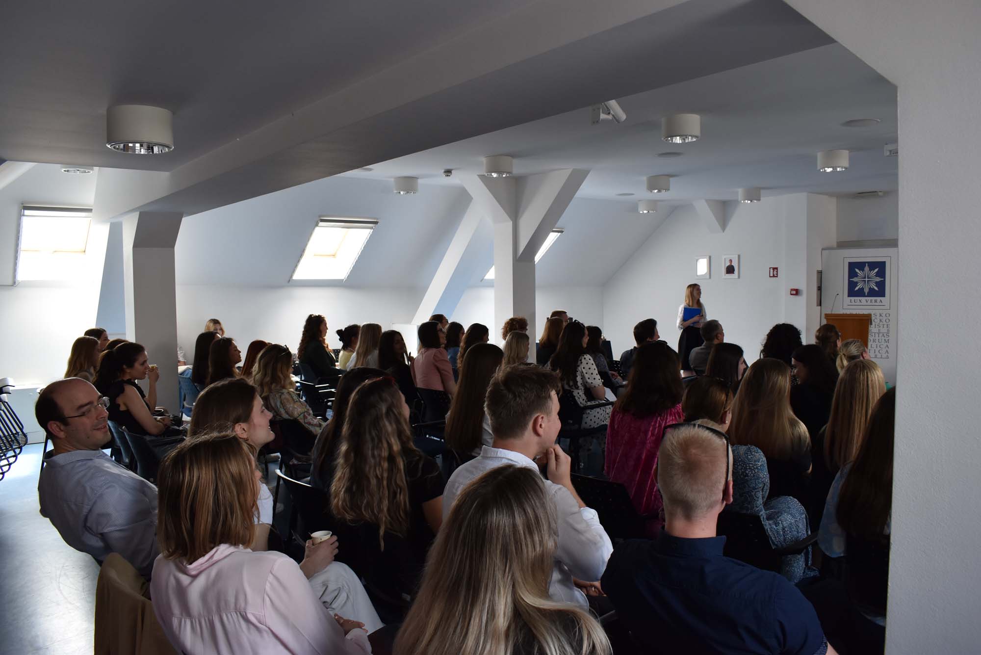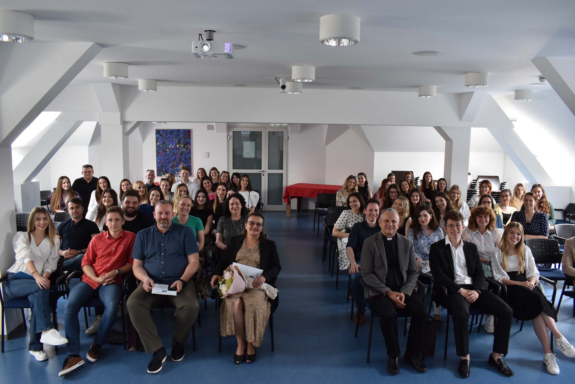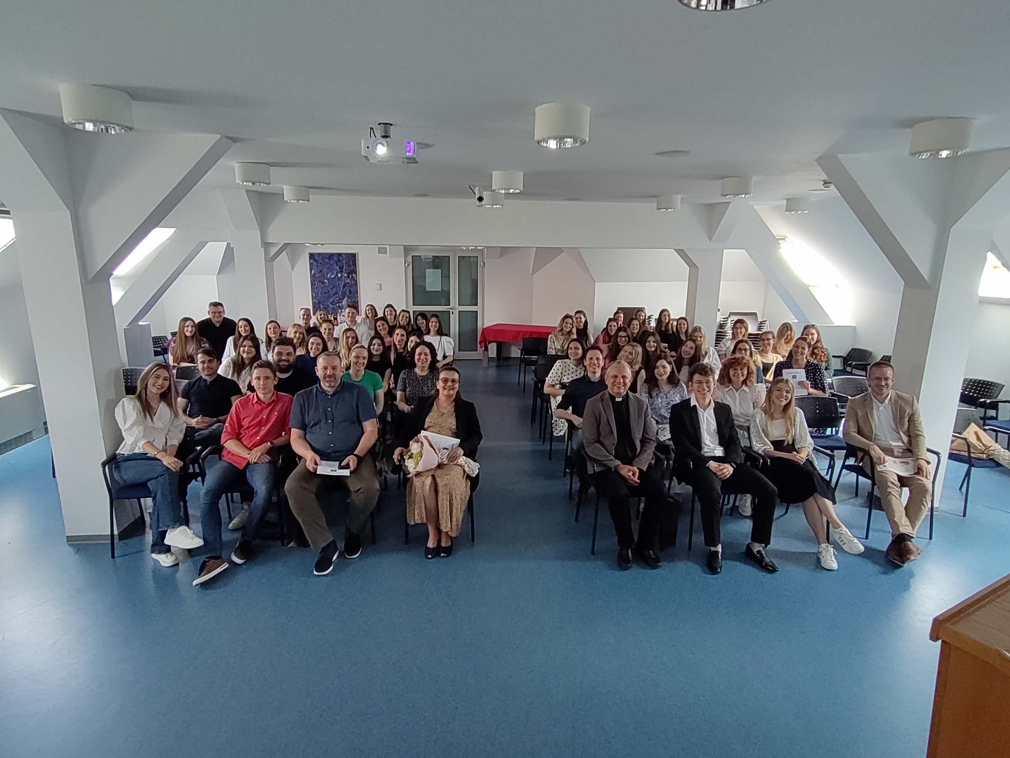U petak 2. lipnja 2023. u dvorani Blaženog Alojzija kard. Stepinca na Hrvatskom katoličkom sveučilištu susreli su se studenti treće godine prijediplomskog sveučilišnog studija Odjela za psihologiju s rektorom Hrvatskog katoličkog sveučilišta prof. dr. sc. Željkom Tanjićem, prorektorom za nastavu prof. dr. sc. Rokom Mišetićem, pročelnicom Odjela za psihologiju izv. prof. dr. sc. Ljiljanom Pačić Turk, voditeljicom godišta dr. sc. Barbarom Balaž, Sveučilišnim kapelanom vlč. Branimirom Jagodićem i nastavnicima Odjela.