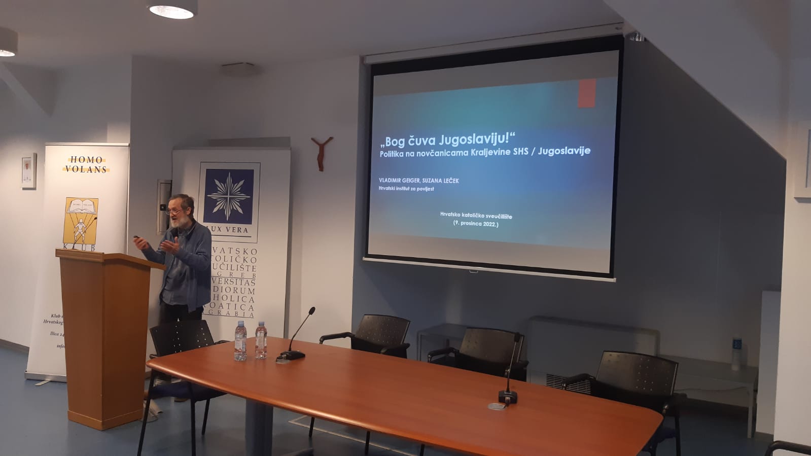 Posljednje izlaganje održali su s Hrvatskog instituta za povijest dr. sc. Vladimir Geiger i dr. sc. Suzana Leček, autori knjige Bog čuva Jugoslaviju! koja se bavi političkom i ideološkom pozadinom dizajna ikonografije Kraljevine SHS / Jugoslavije. Autori su se u izlaganju osvrnuli na „nacionalni novac“ 19. i 20. stoljeća te dali ikonološku analizu novčanica odnosno uporabu motiva ljudi, prostora i vremena na njima.
