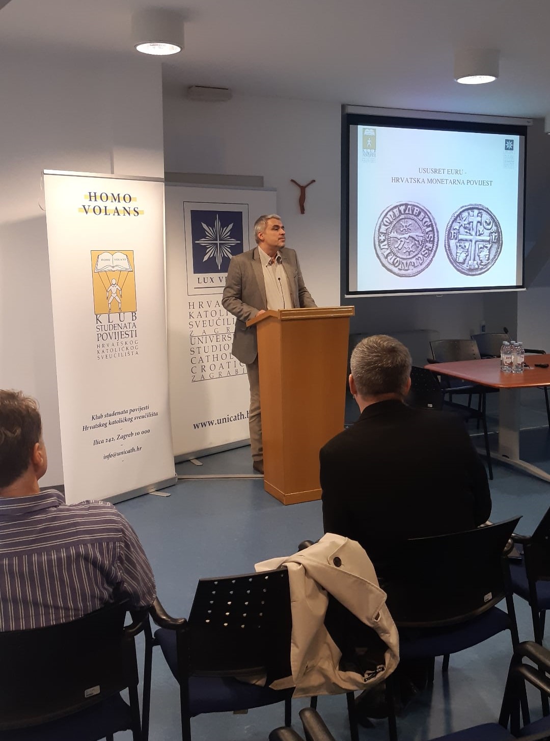 U petak, 9. prosinca 2022. na Hrvatskom Katoličkom sveučilištu u organizaciji Odjela za povijest i Kluba studenata Odjela za povijest Hrvatskog katoličkog sveučilišta Homo Volans održan je znanstveno-stručni skup Ususret euru – Hrvatska monetarna povijest. Znanstveno-stručni skup za cilj je imao pribliožiti studentima i svim zainteresiranima numizmatiku kao pomoćnu povijesnu znanost te u okvirima akademske rasprave ukazao na pojedine aspekte monetarne povijesti i povijesti uporabe novca u hrvatskim zemljama.