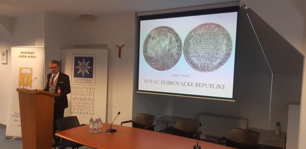 Treće izlaganje o novcu Dubrovačke Republike održao je numizmaičar Zlatko Viščević. Gospodin Viščević dao je pregled novca odnosno novčanih jedinica kovanih u Dubrovačkoj Republici te se osvrnuo na svetačke prikaze na njima.