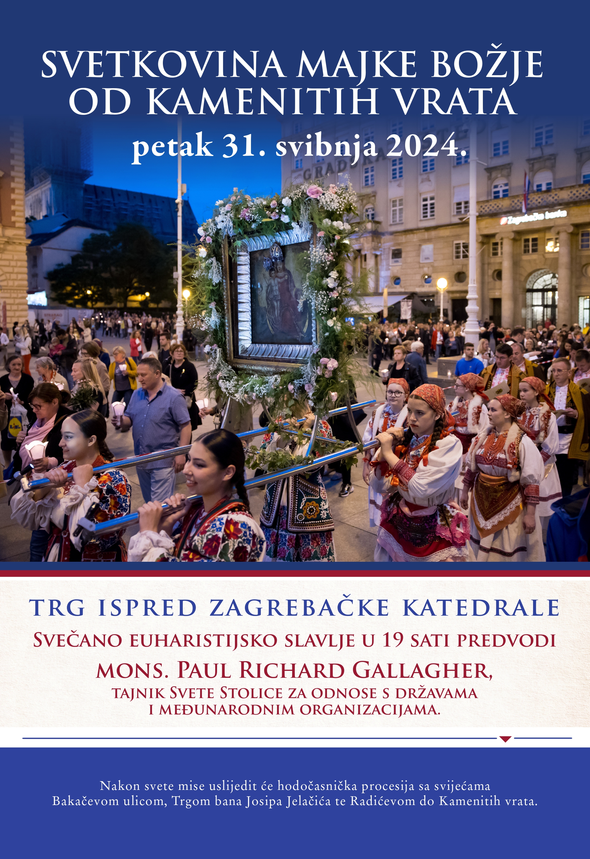 Na svetkovinu Majke Božje od Kamenitih vrata, zaštitnice grada Zagreba, u petak 31. svibnja 2024. godine, svečano misno slavlje u 19 sati ispred zagrebačke prvostolnice predvodit će nadbiskup mons.…