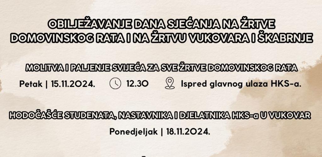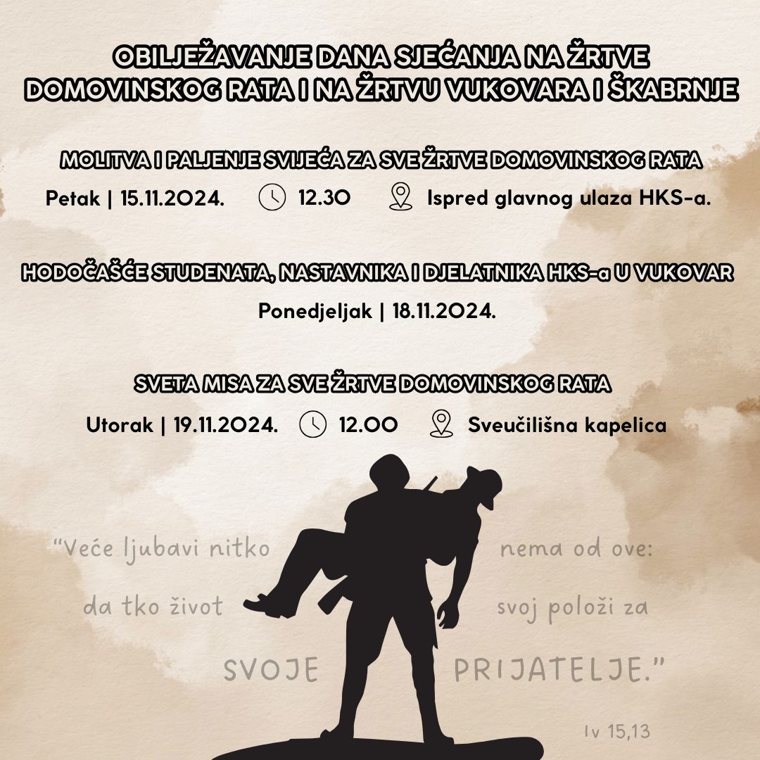 u ponedjeljak 18. studenog obilježavamo Dan sjećanja na žrtve Domovinskog rata i Dan sjećanja na žrtvu Vukovara i Škabrnje. Tom ćemo prigodom, na našem Sveučilištu u danima koji su pred nama imati prigodno obilježavanje ovih važnih događaja.