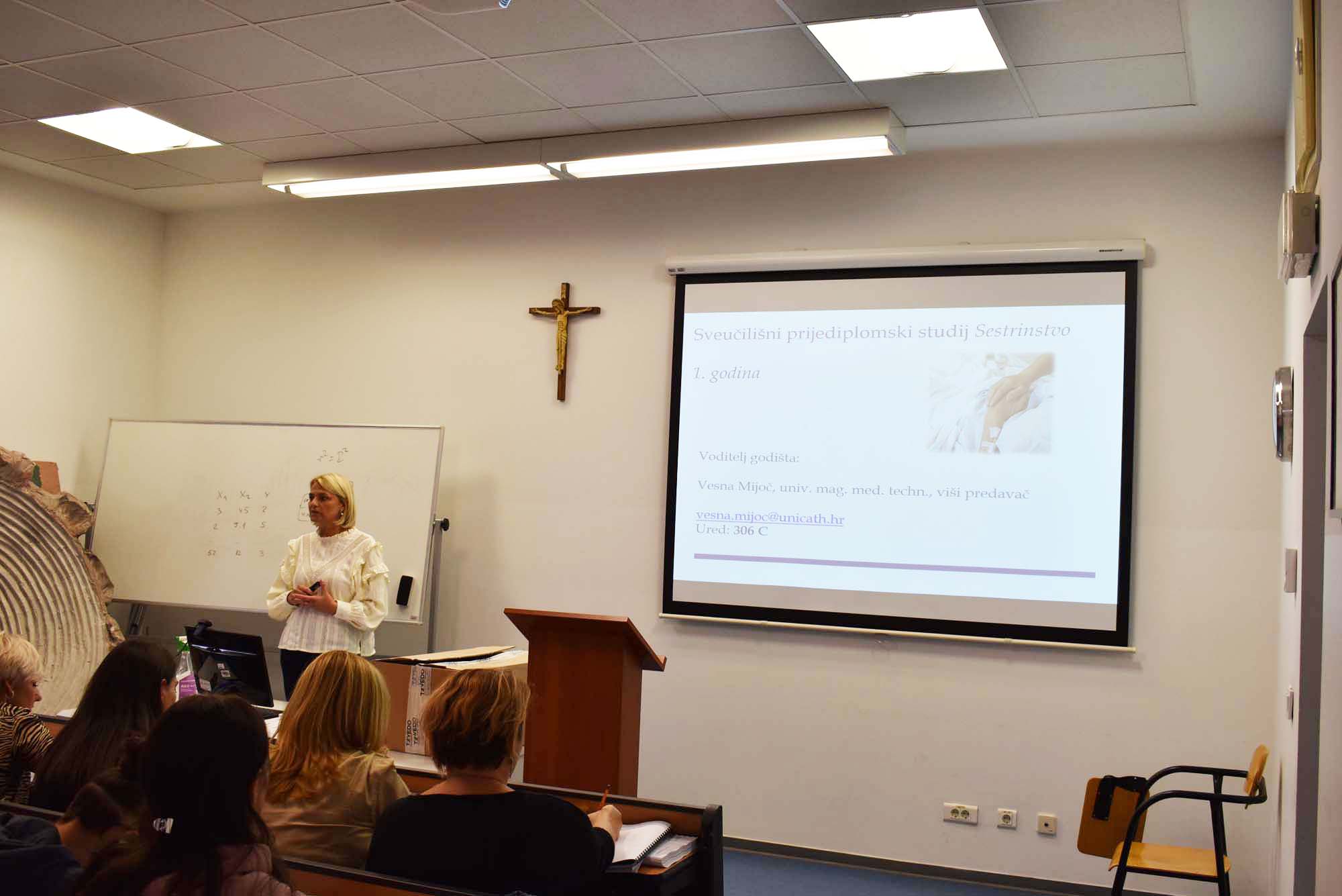 Pročelnica Sveučilišnog odjela za sestrinstvo izv. prof. dr. sc. Marta Čivljak susrela se sa studentima prijediplomskog studija Sestrinstvo, poželjevši im puno uspjeha i Božjeg blagoslova na studiju.