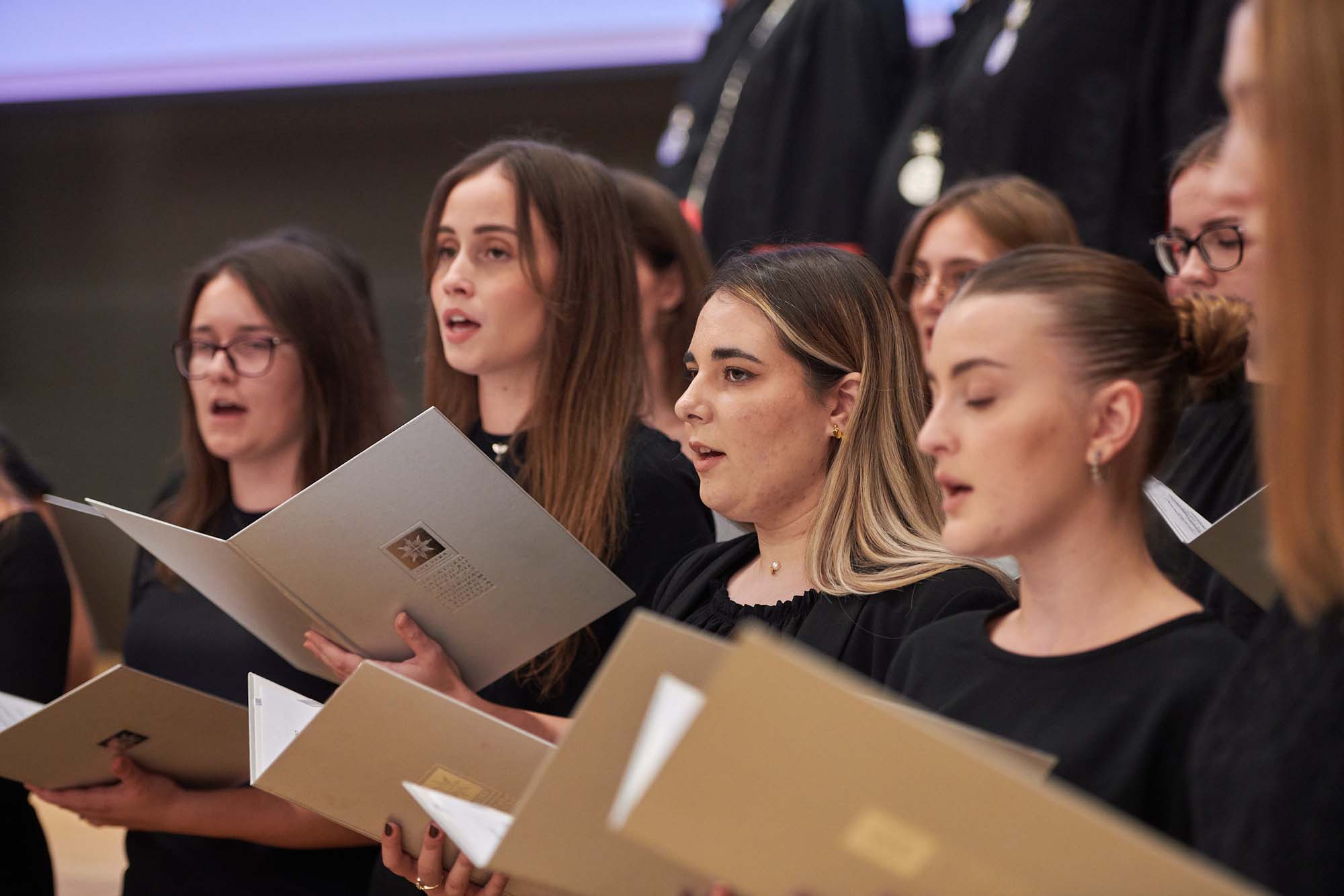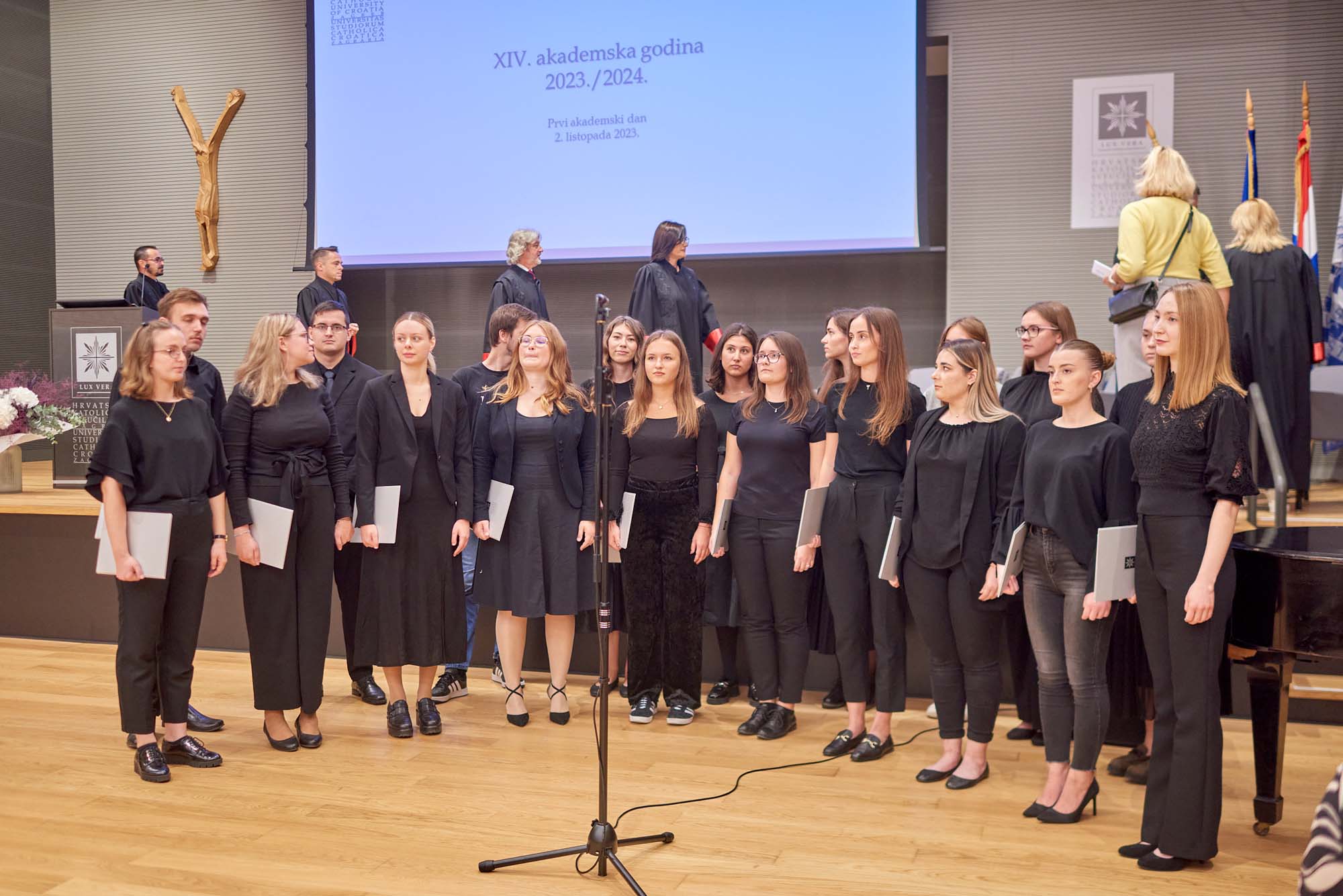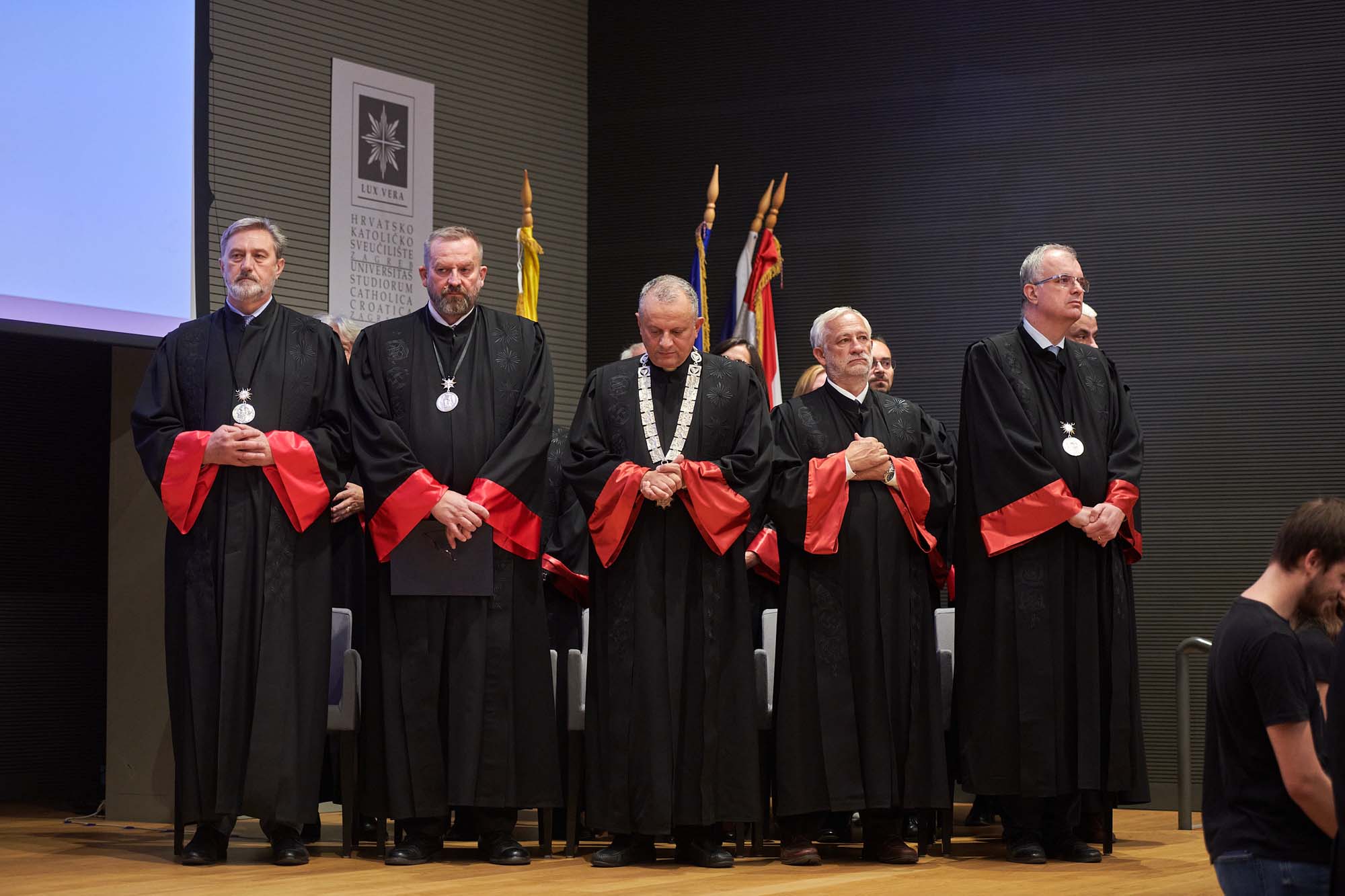 U Velikoj dvorani Hrvatskog katoličkog sveučilišta svečanom akademskom činu prisustvovali su studentice i studenti sveučilišnih prijediplomskih i diplomskih studija povijesti, sociologije, psihologije, komunikologije, sestrinstva i medicine, uz studente Erasmus+ programa koji su došli iz Poljske, Ukrajine, Italije i Turske.