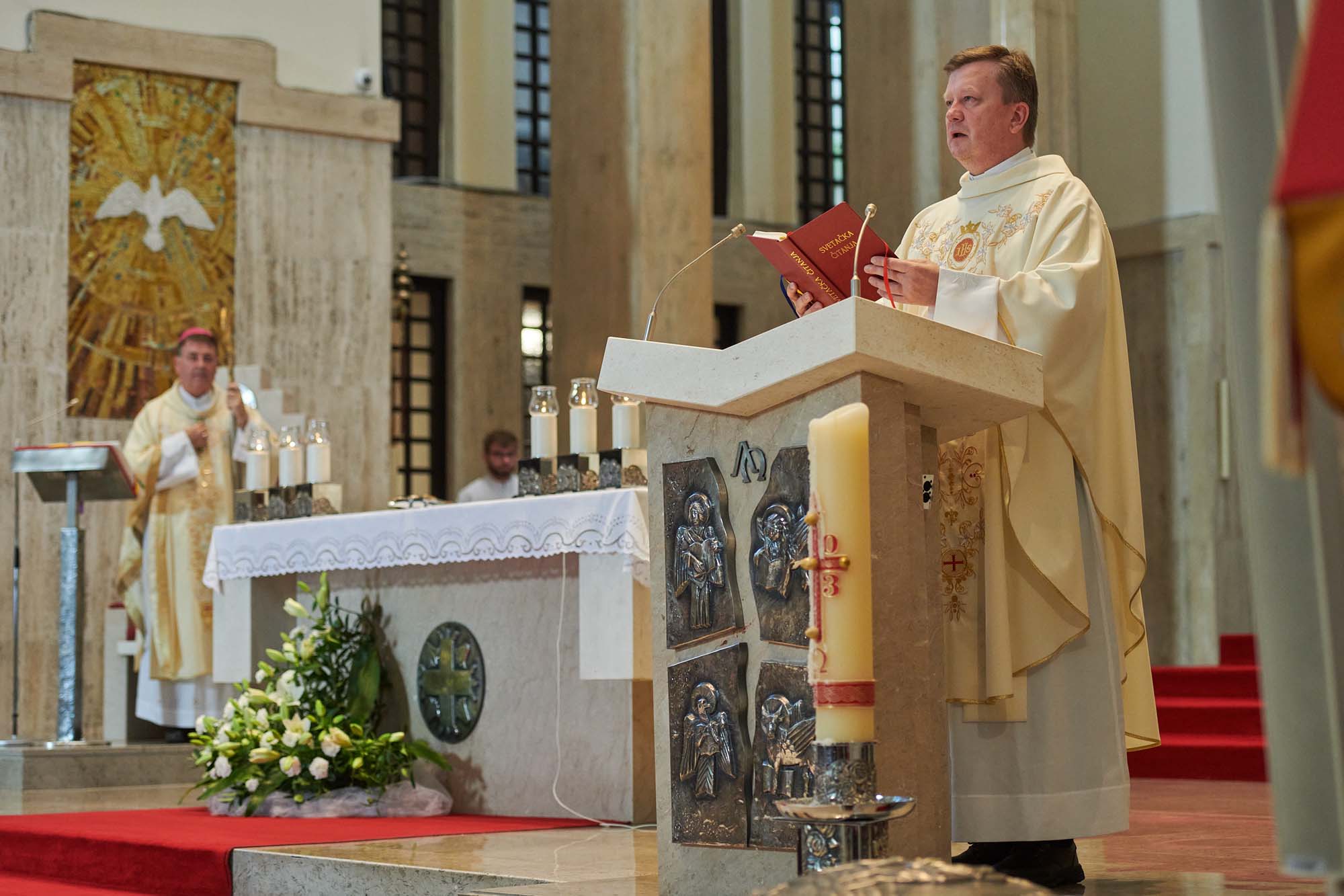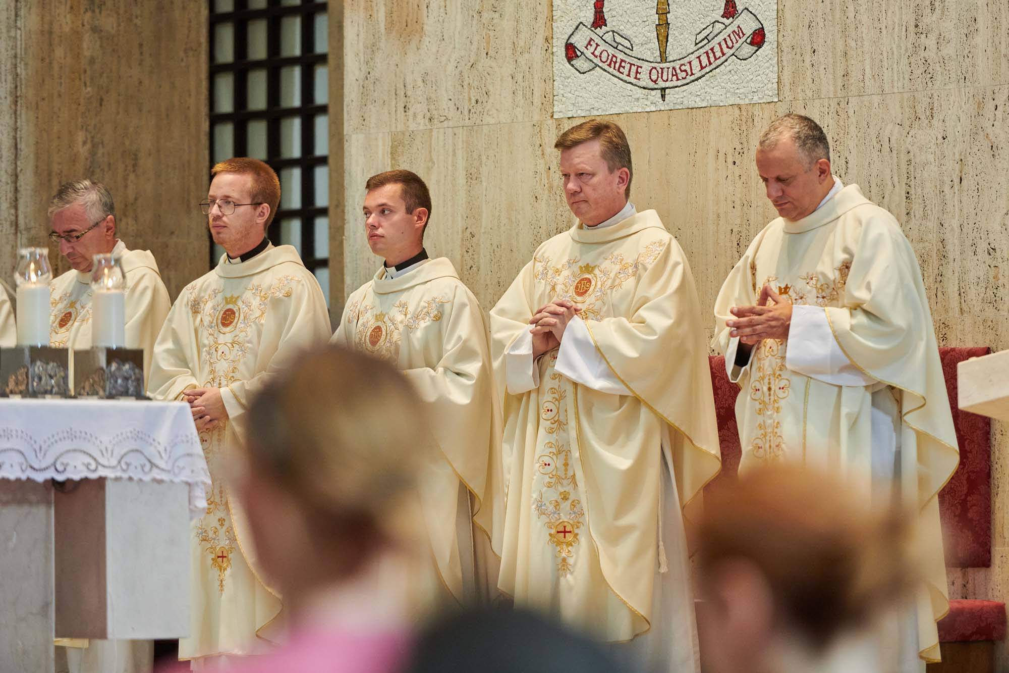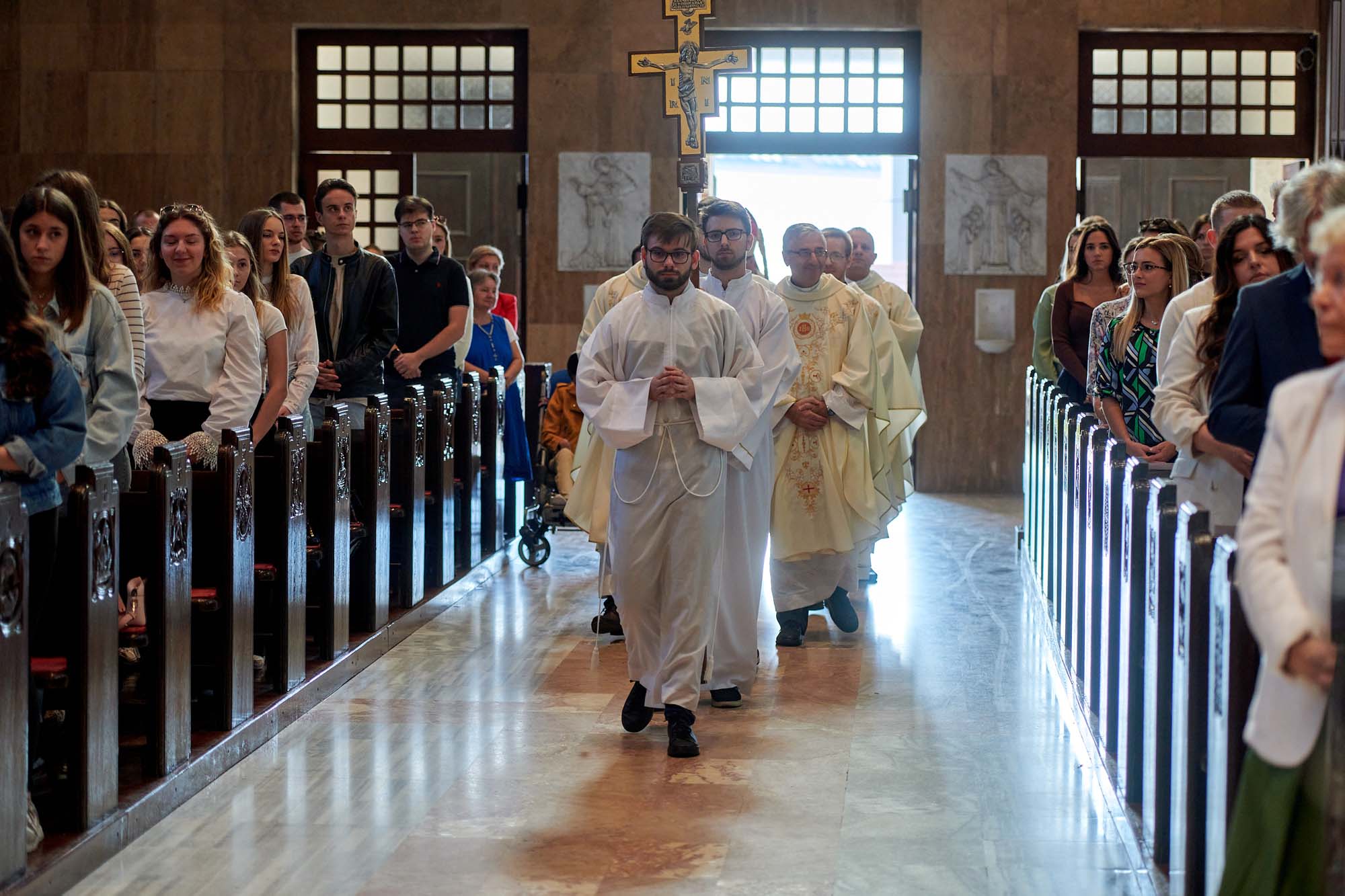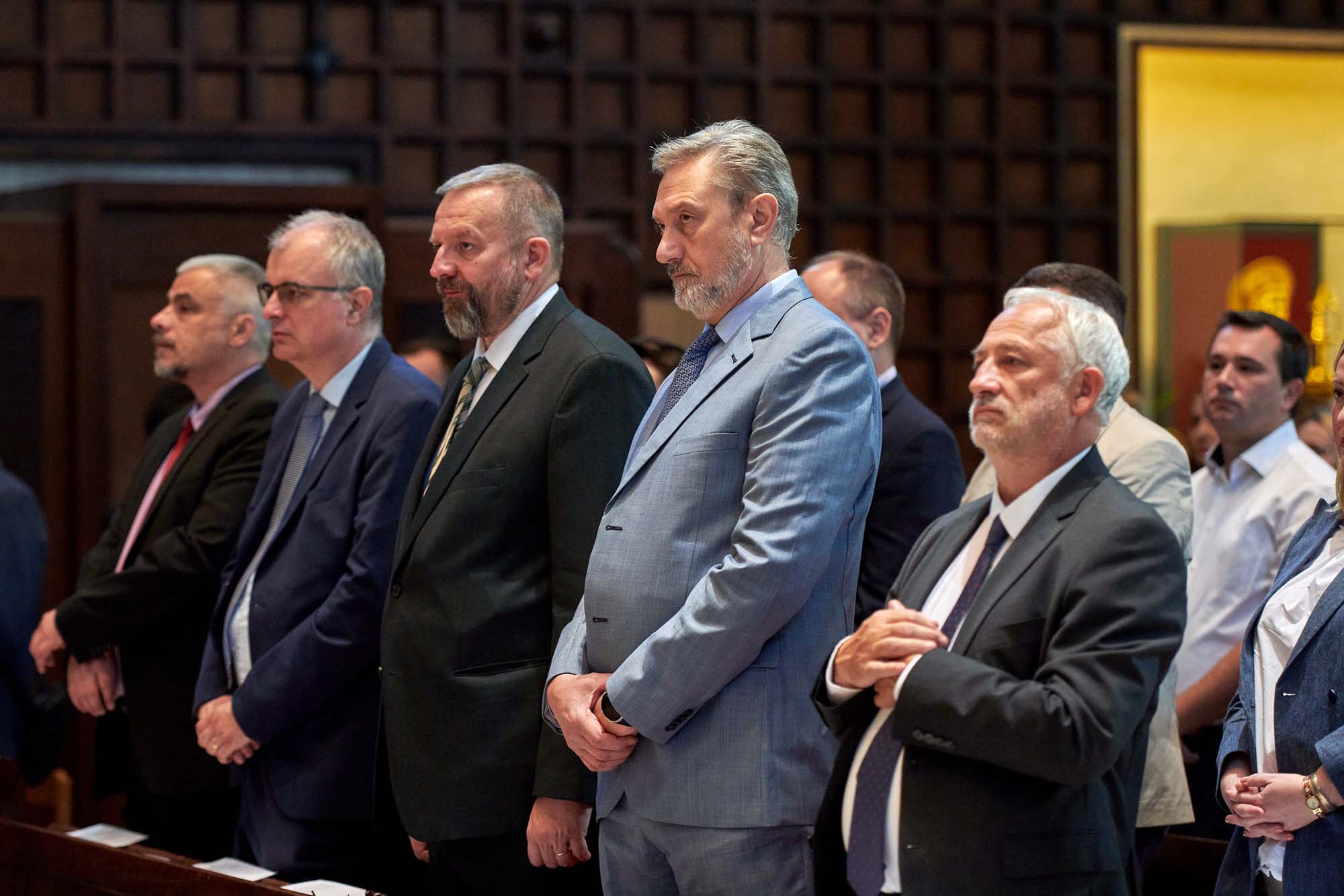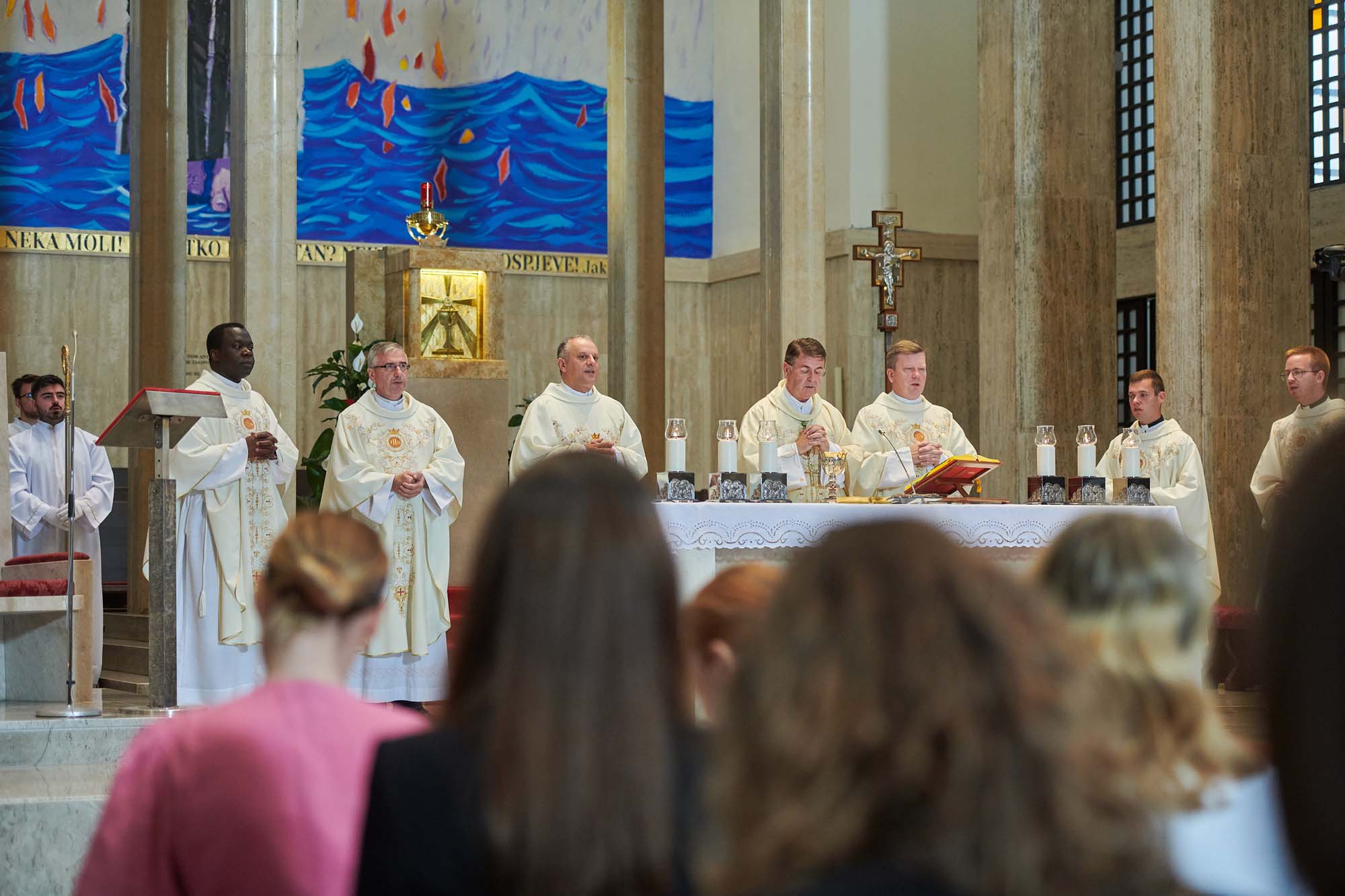 Sveto misno slavlje u crkvi Svetog Antuna Padovanskog na Svetom Duhu, kojem su prisustvovali prorektori, pročelnici, profesori, djelatnici i studenti Hrvatskog katoličkog sveučilišta, predvodio je mons. Ivan Šaško, pomoćni biskup zagrebački i prvi rektor HKS-a, u koncelebraciji s rektorom Hrvatskog katoličkog sveučilišta prof. dr. sc. Željkom Tanjićem, doc. dr. sc. Krunoslavom Novakom, generalnim tajnikom Hrvatske biskupske konferencije, vlč. Branimirom Jagodićem, sveučilišnim kapelanom, vlč. Filipom Šešekom, povjerenikom za mlade Zagrebačke nadbiskupije, prof. dr. sc. Jerkom Valkovićem, sa Sveučilišnog odjela za komunikologiju te doc. dr. sc. Odilonom Singboom s Katedre za teologiju.