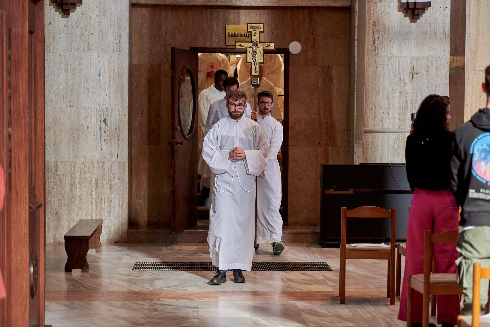 Svojim skladnim pjevanjem sveto misno slavlje animirao je Pjevački zbor Hrvatskog katoličkog sveučilišta Chorus Unicath i okupljeni članovi akademske zajednice HKS-a. Mons. Ivan Šaško pozdravio je okupljene u ime Velikog kancelara mons. Dražena Kutleše, zagrebačkog nadbiskupa i metropolite, zaželjevši svima dobar početak nove akademske godine i zaželjevši dobrodošlicu svima koji su se pridružili akademskoj obitelji HKS-a koji je obilježen trostrukom odlikom: sveučilišnom, hrvatskom i katoličkom. "Ovo je slavlje ispunjeno nadom i otvorenošću prema Božjim putovima. Ovdje usklađujemo svoje planove i želje s Božjom voljom i njegovim nadahnućima. Ovo slavlje višestruko pokazuje da nikada nismo sami. Tomu je tako ne samo po blizini naših bližnjih i po molitvi Crkve, nego još dublje – što danas posebno razmatramo – po svetim anđelima čuvarima koji šire otvaraju obzore našega života i prisutnosti", istaknuo je mons. Šaško.