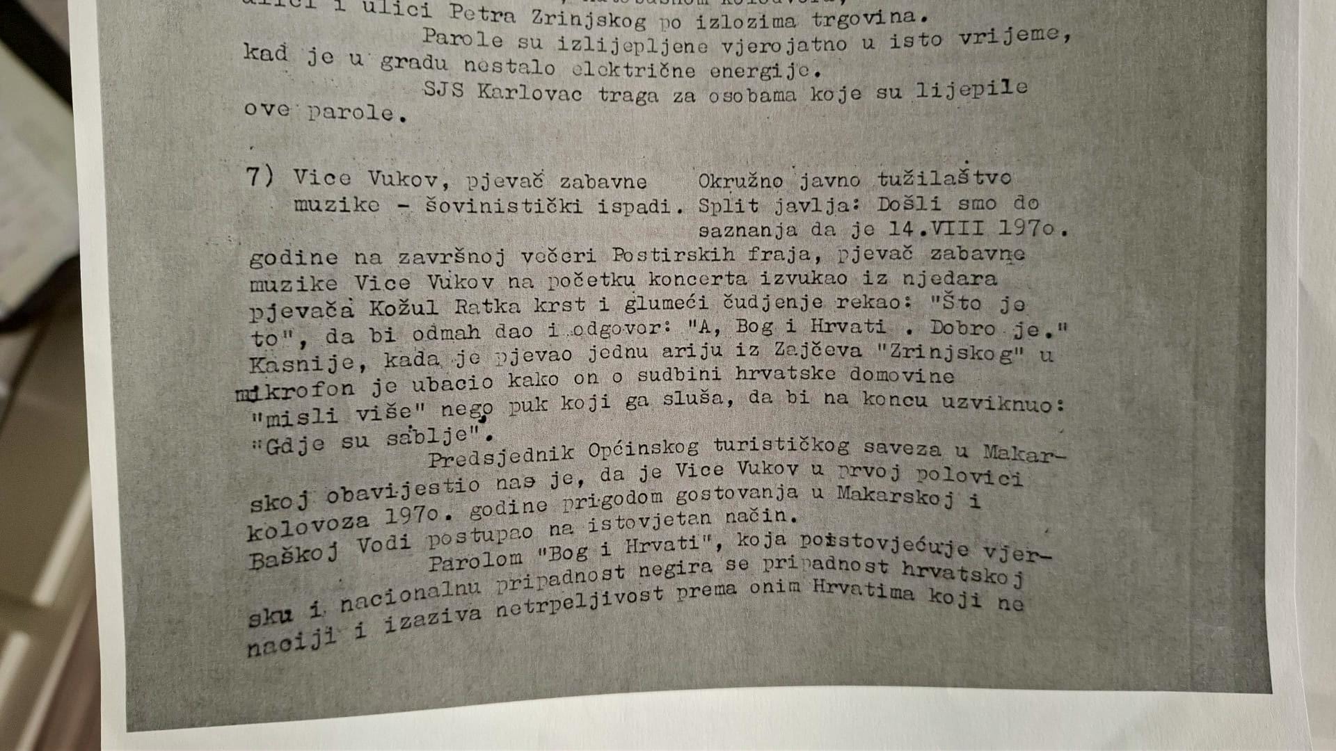 Zbirka Vladimira Šeksa, Javno tužilaštvo Hrvatske, pov. br. 1/70-33, Izvještaj broj 33 od 28. kolovoza 1970. (fotografija autora teksta)