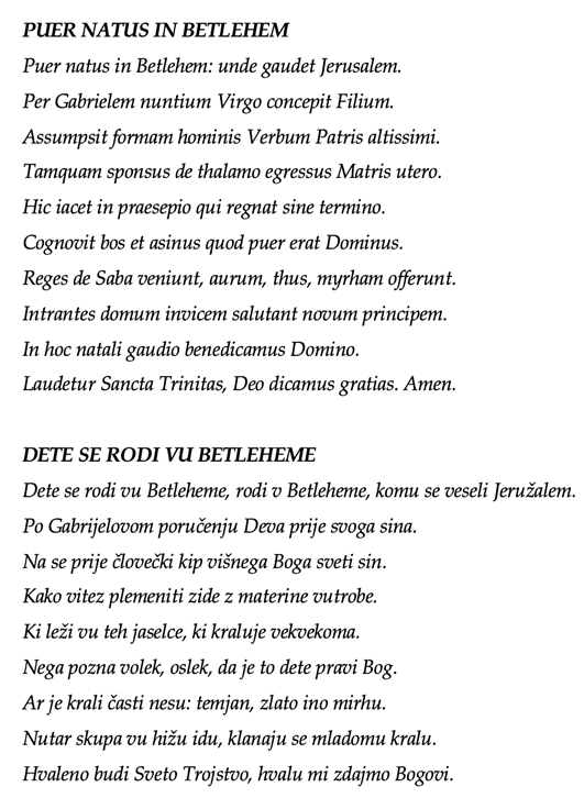 Uspoređujući tekst popijevke Bog se rodi v Vitliomi, koji će se kasnije iznijeti, s latinskom antifonom Puer natus est nobis, izravne podudarnosti nisu primjetne. Međutim, oba su napjeva sadržajno namijenjena pjevanju na svetkovinu Božića. Budući da puk nije razumio latinski jezik, nije mogao sudjelovati u liturgijskom pjevanju, zbog čega su vjerojatno nastajale popijevke na narodnom jeziku kako bi puk mogao sudjelovati u bogoslužju.