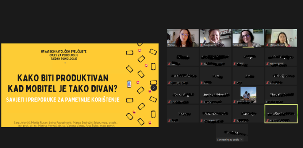 U sklopu obilježavanja Dana medijske pismenosti članovi našeg istraživačkoga tima održali su 6. svibnja radionicu pod nazivom „Kako biti produktivan kad mobitel je tako divan?" na kojoj je sudjelovalo 38 studenta. Hvala vam na sudjelovanju i druženju!