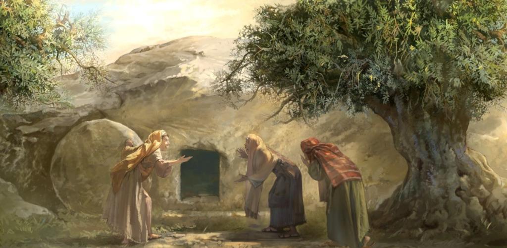 Prvoga dana u tjednu, veoma rano, dođoše one na grob s miomirisima što ih pripraviše. Kamen nađoše otkotrljan od groba. Uđoše, ali ne nađoše tijela Gospodina Isusa. I dok su stajale zbunjene nad tim, gle, dva čovjeka u blistavoj odjeći stadoše do njih. Zastrašene obore lica k zemlji, a oni će im: »Što tražite Živoga među mrtvima? Nije ovdje, nego uskrsnu! Sjetite se kako vam je govorio dok je još bio u Galileji: 'Treba da Sin Čovječji bude predan u ruke grešnika, i raspet, i treći dan da ustane.'« I sjetiše se one riječi njegovih, vratiše se s groba te javiše sve to jedanaestorici i svima drugima.